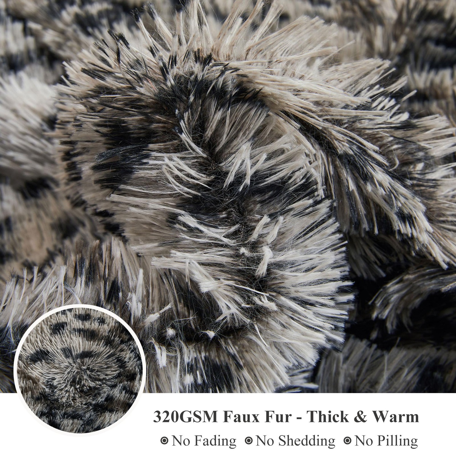 Leopard Print Fluffy Faux Fur Duvet Cover Set, 3 Pieces Soft Plush Shaggy Fuz...