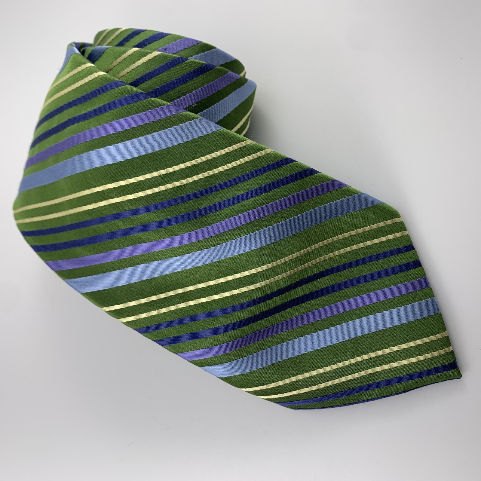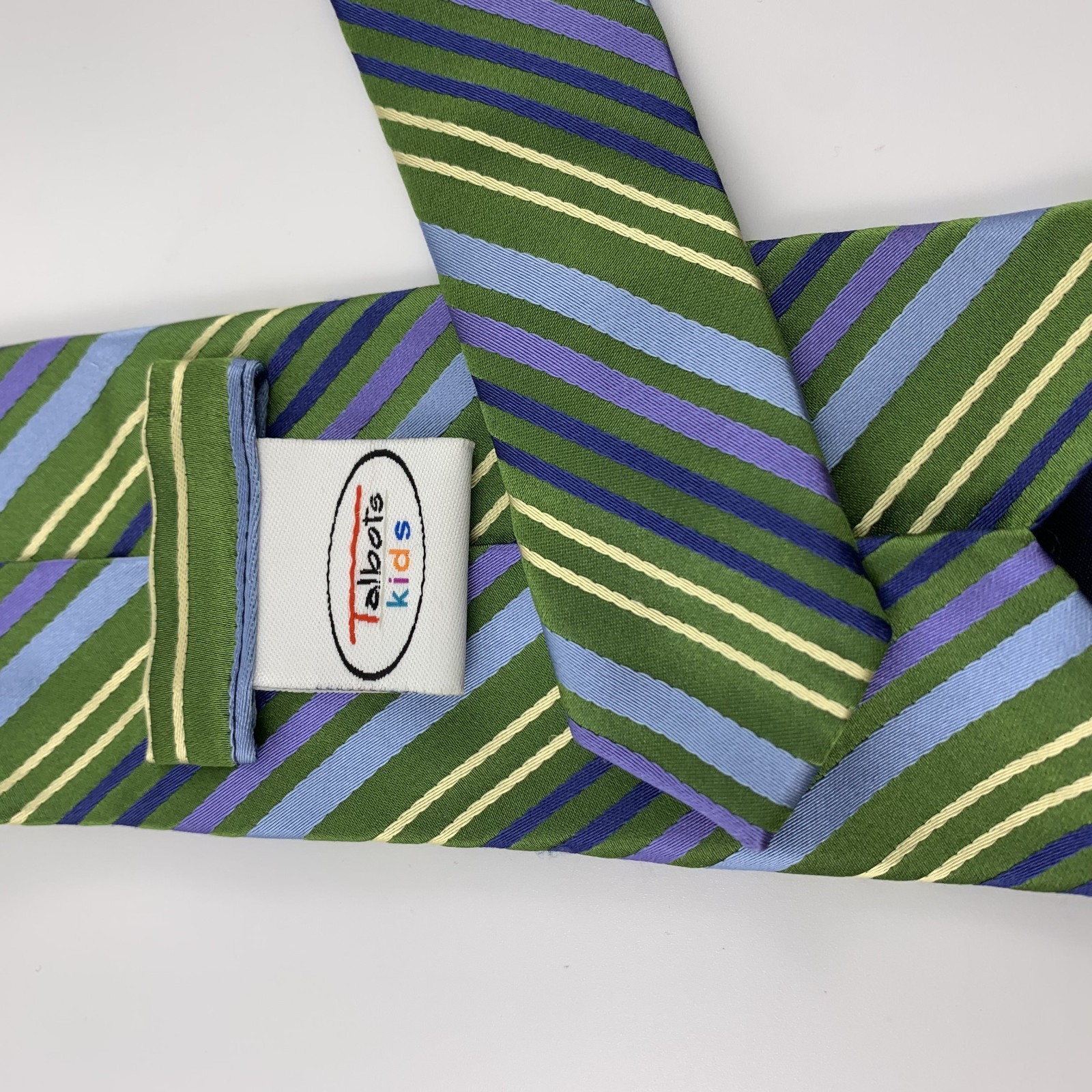 Talbots Kids Child Boys Tie Green Blue Purple Striped 100 Silk Necktie 36 x 3