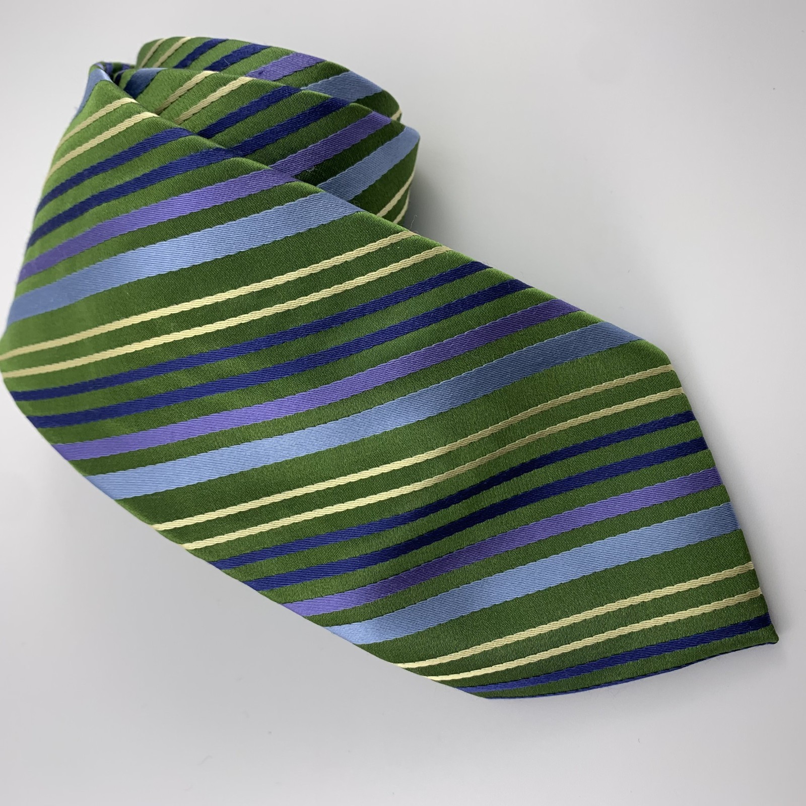 как выглядит Talbots Kids Child Boys Tie Green Blue Purple Striped 100 Silk Necktie 36" x 3" фото