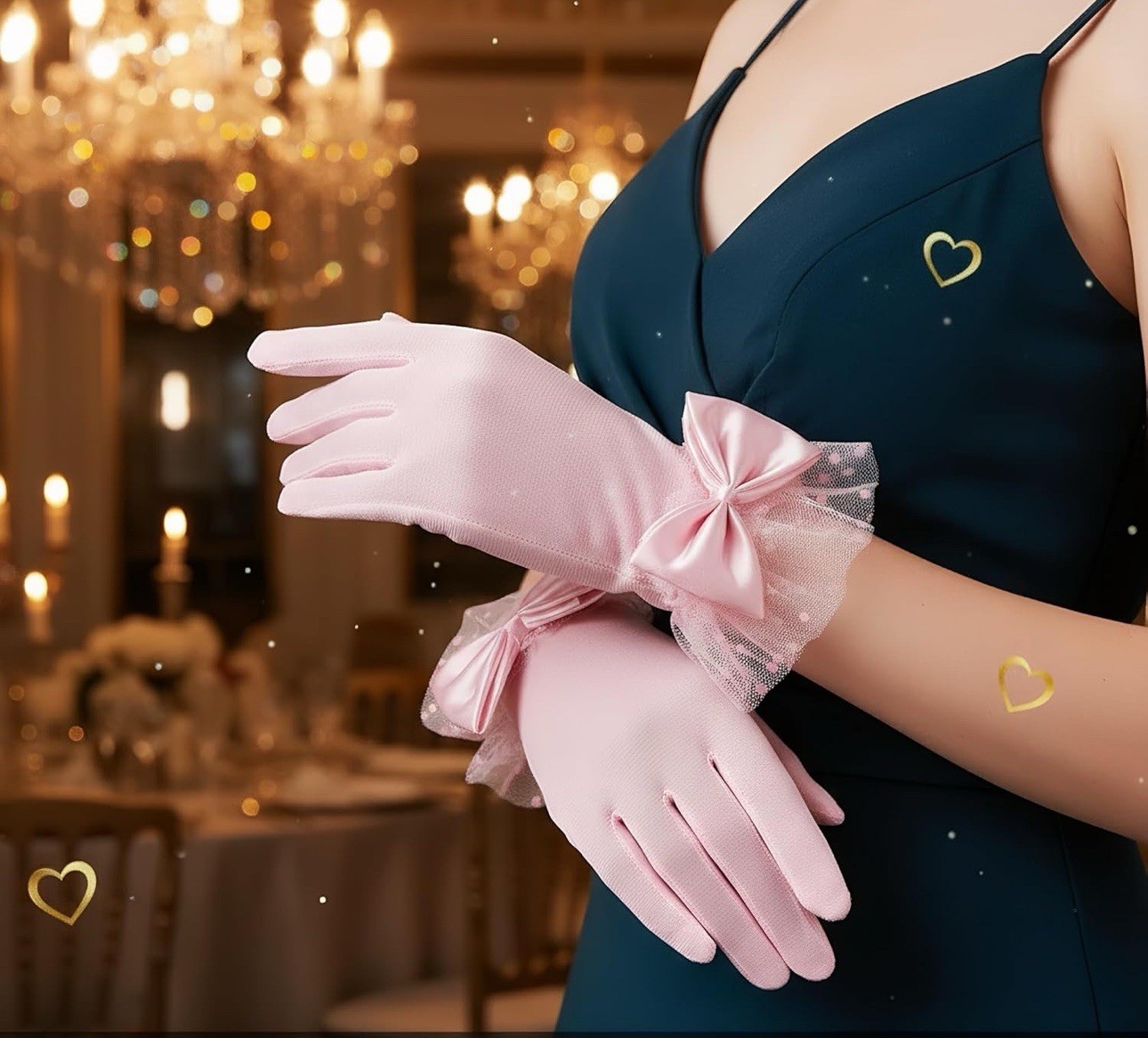 Pink Lace Gloves Women Bridal Opera Tea Party Derby Short Brides mate Gloves Bow
