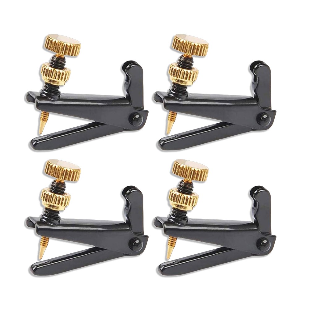 4 Pcs Black Violin Fine Tuning Adjusters Fit 3/4 4/4 Violins, Gold Screws