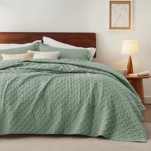 как выглядит Quilts King Size - Lightweight Bedspreads King 106" x 96" 04 - Sage Green фото