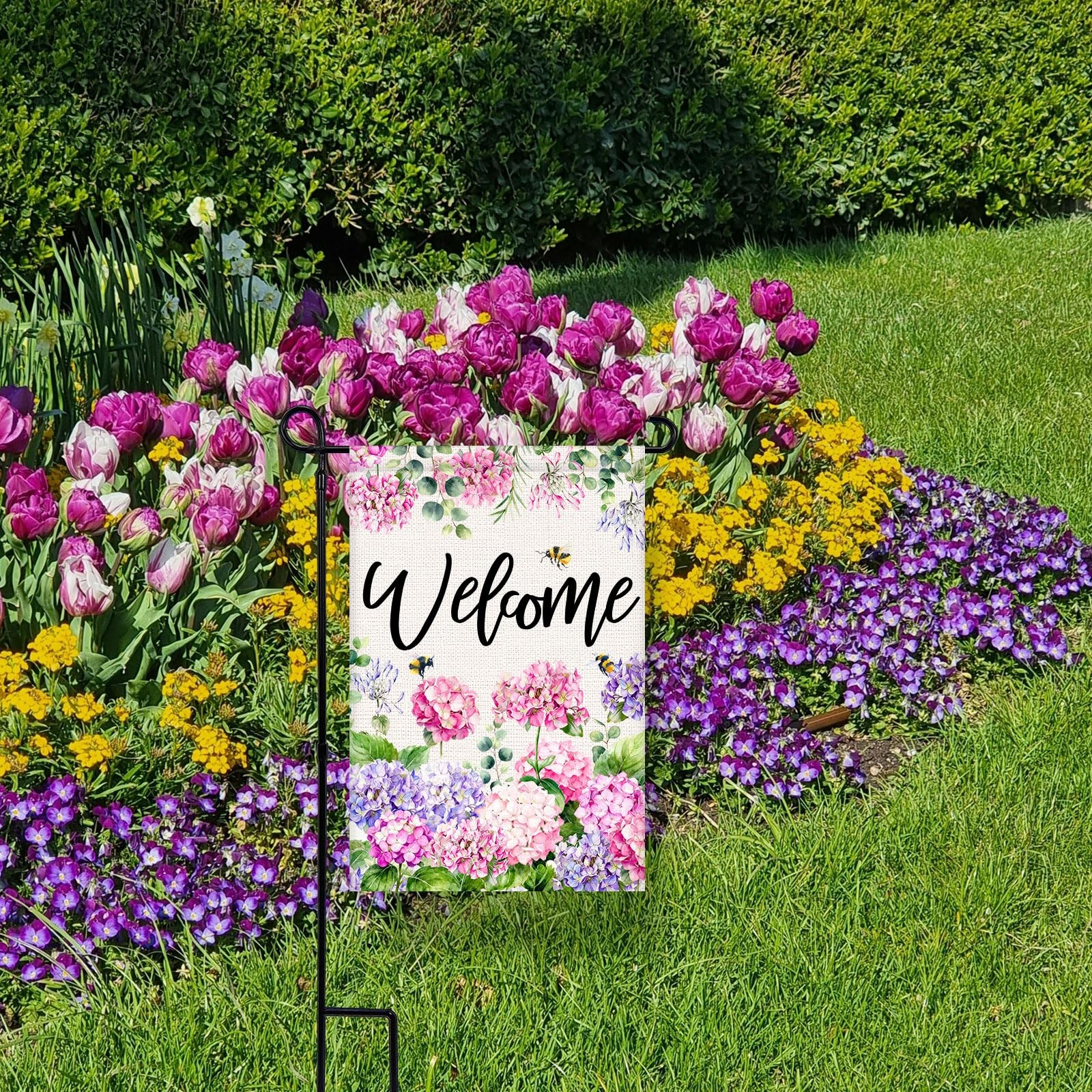 Welcome Spring Summer Garden Flag 12x18 Inch Double Sided Colorful Floral Hyd...