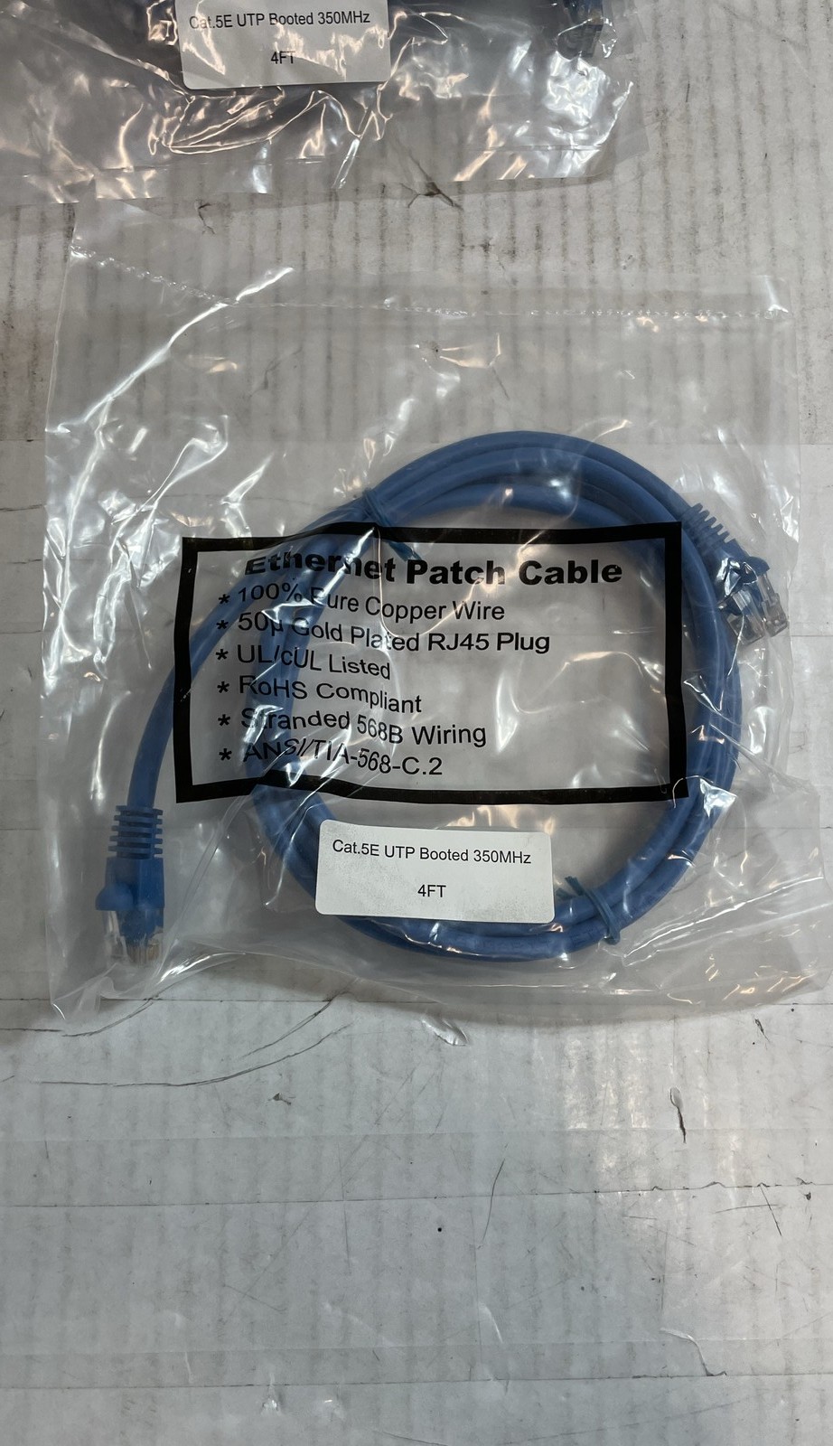 Cat5e Ethernet Patch Cables 4ft Blue RJ45 350MHz Booted Lot Of 10