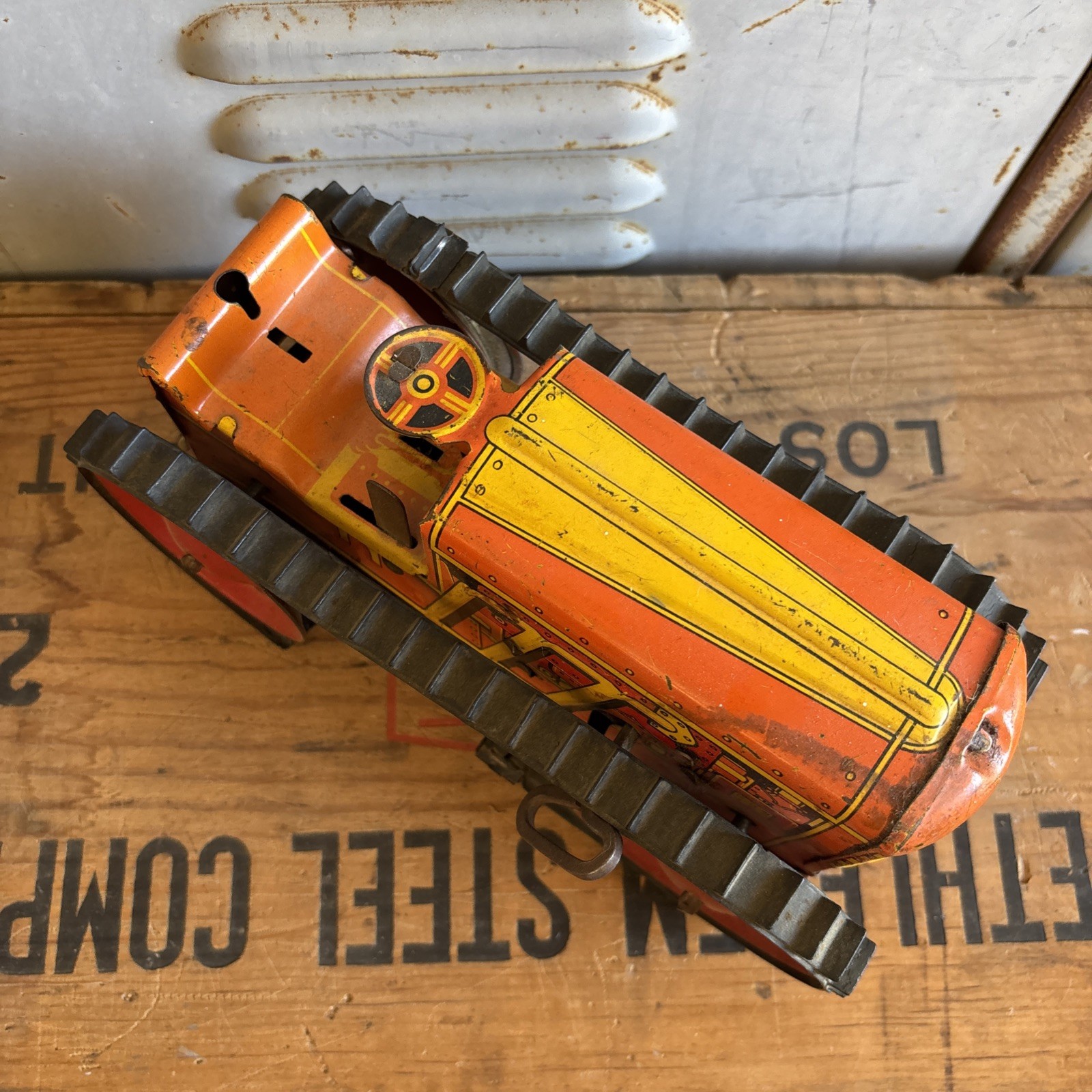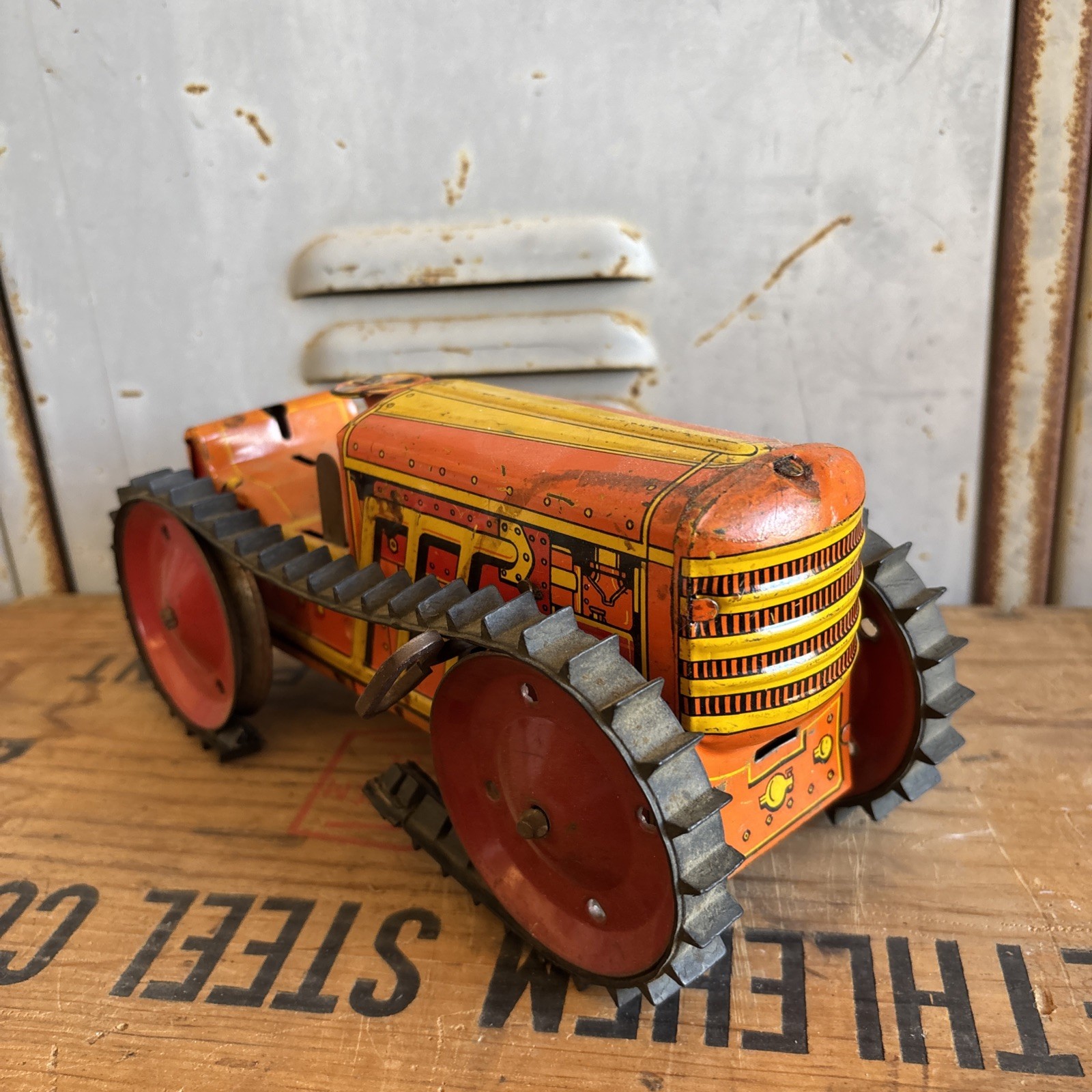 VTG Marx Climbing Tractor Tin Litho Wind Up-broken track orange/yellow/red