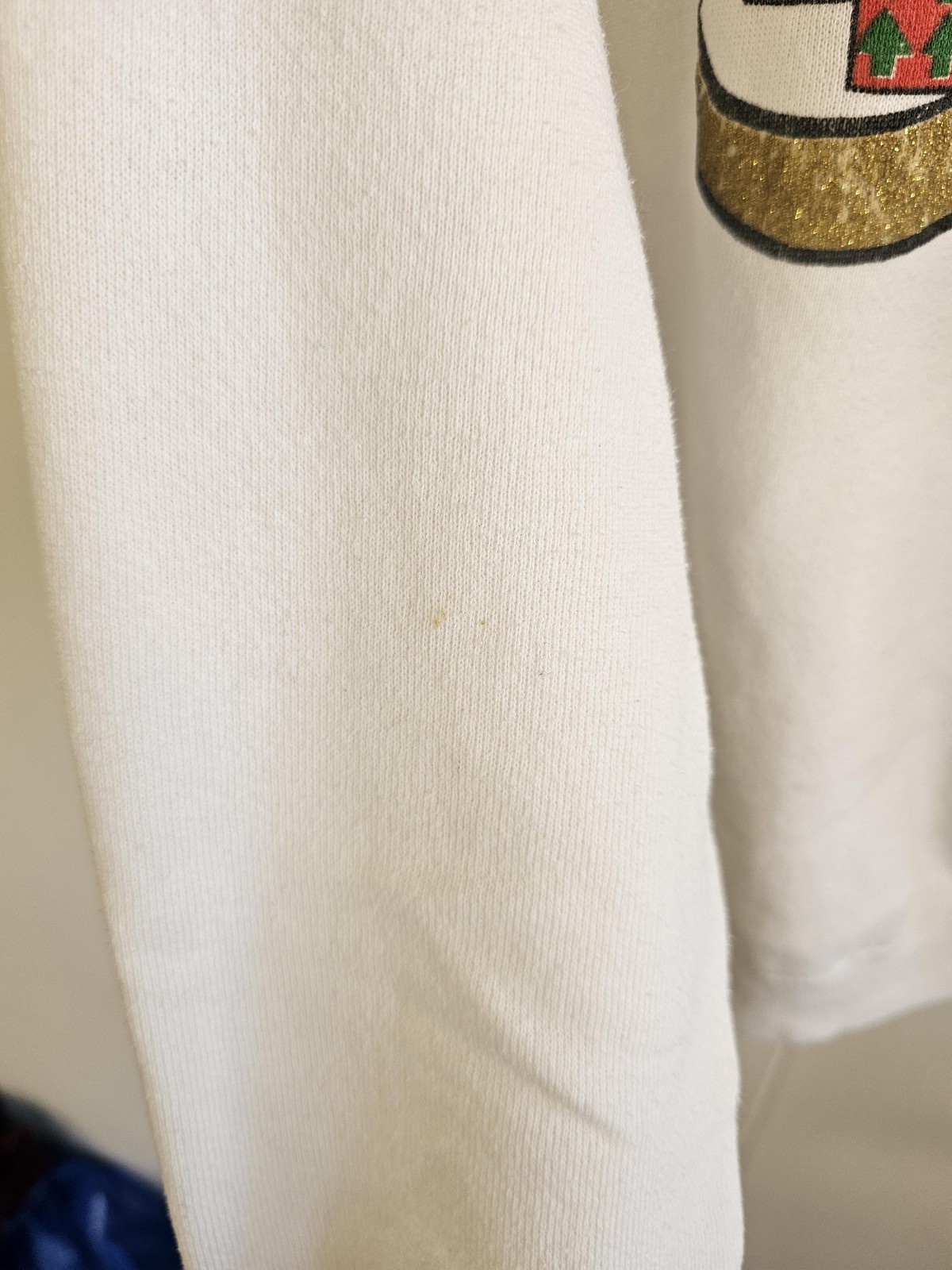 как выглядит Vintage Christmas Bear Sweatshirt Womens Medium White Tultex Holiday Graphic 90s фото