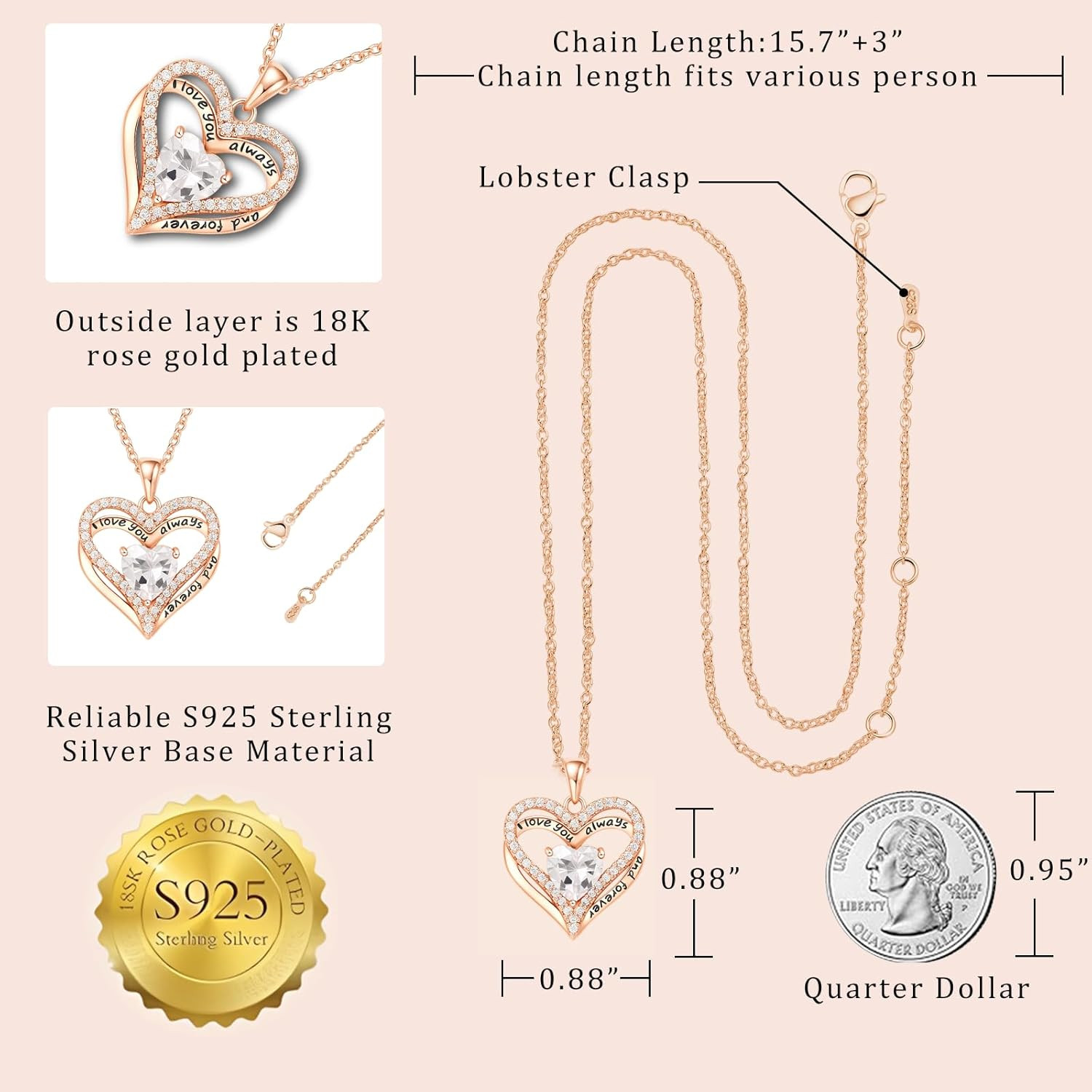Preserved Red Rose Gift Box with Heart Necklace Eternal Real Rose Dainty Love Pe