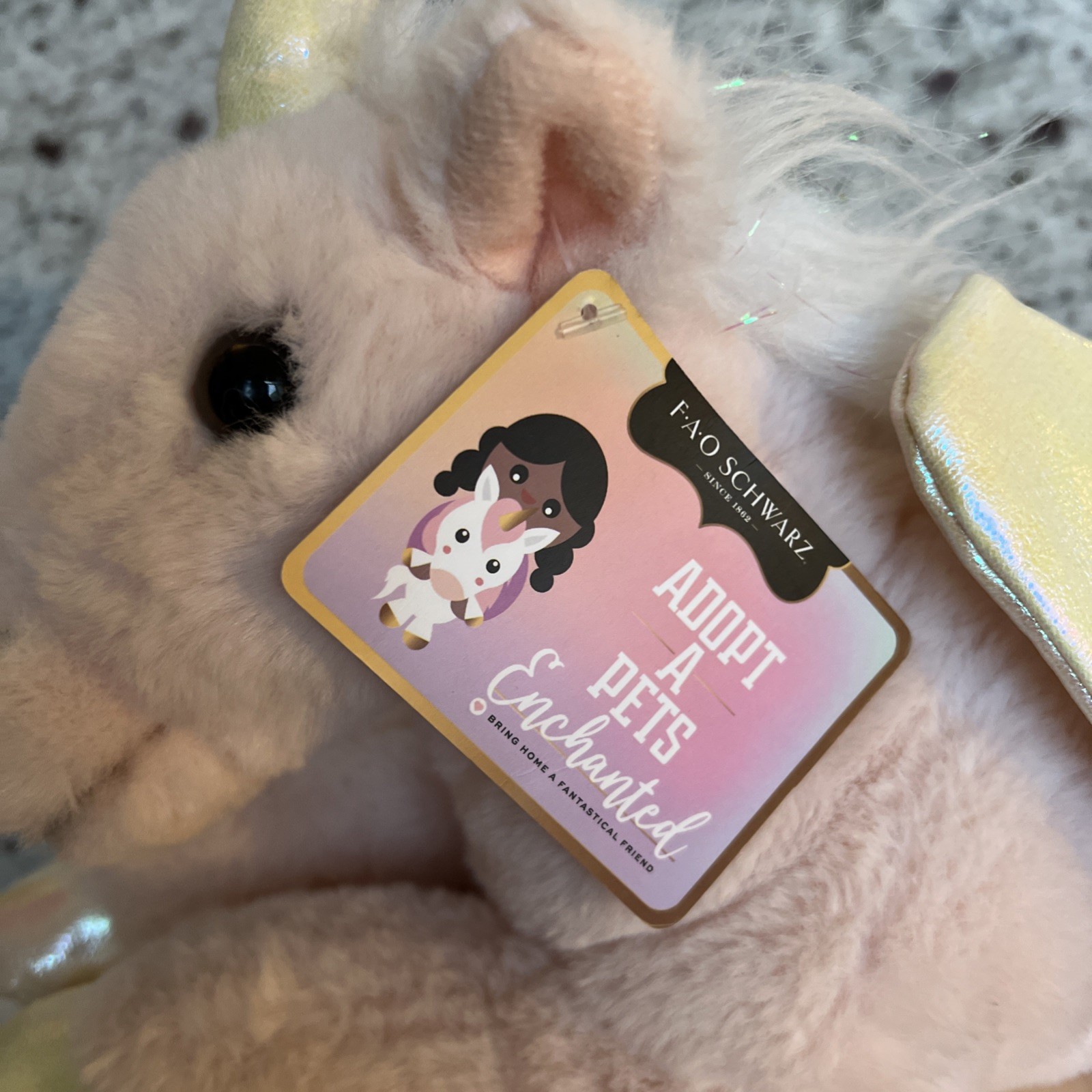 как выглядит New 14" Pink Plush Unicorn Pegasus Enchanted Adopt a Pet FAO Schwarz Shiny Wings фото