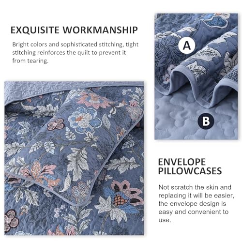 Quilt Set Size Botanical Floral Bedspread Bedding Sets Soft King Blue