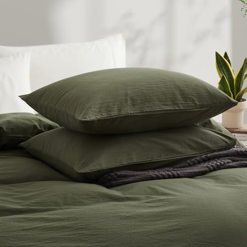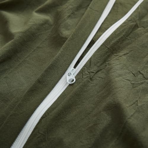 Duvet Cover Size, 100 Washed Cotton Linen Like Bedding Set Full Olive Green