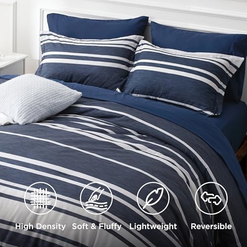 Comforter Set 7 Pieces, Blue Striped Bedding Set for All Queen 05 - Navy