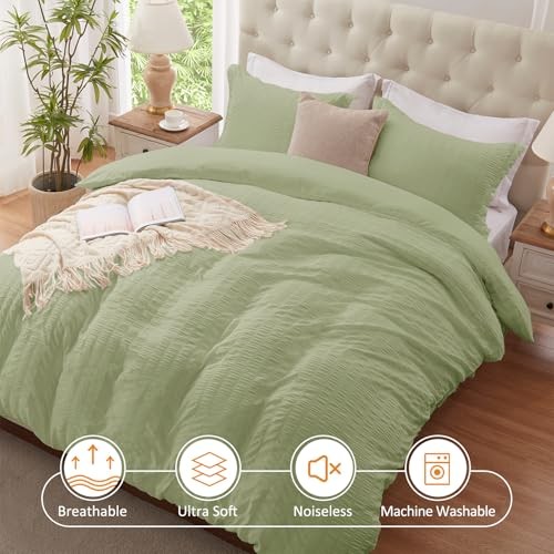 Duvet Cover Queen Size, 3 Pieces Bedding Duvet Covers, Queen 90x90 Green