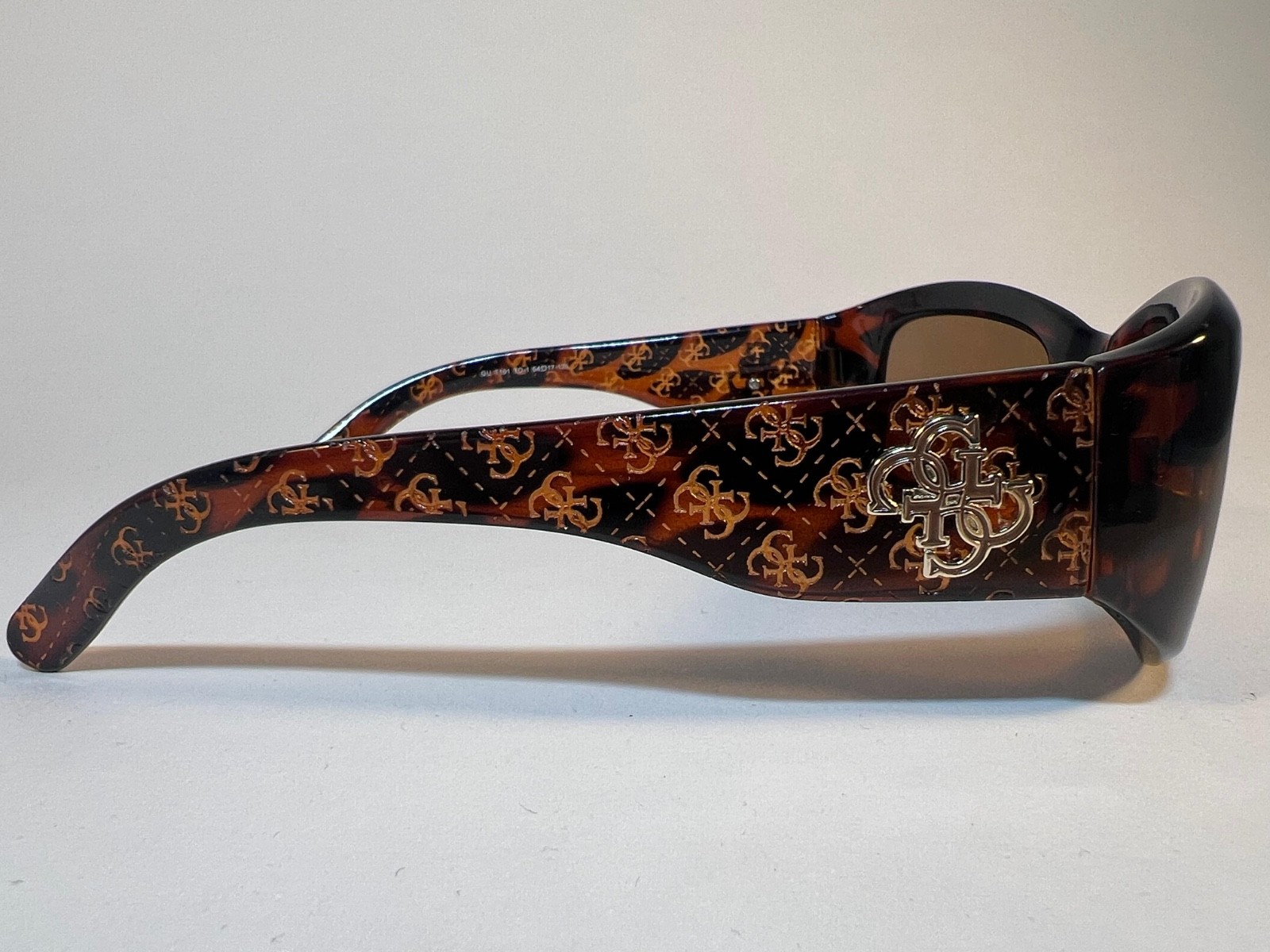 как выглядит GUESS GU T101 TO-1 Vintage Sunglasses NOS Brown Tortoiseshell Logo Arms 54-17 фото