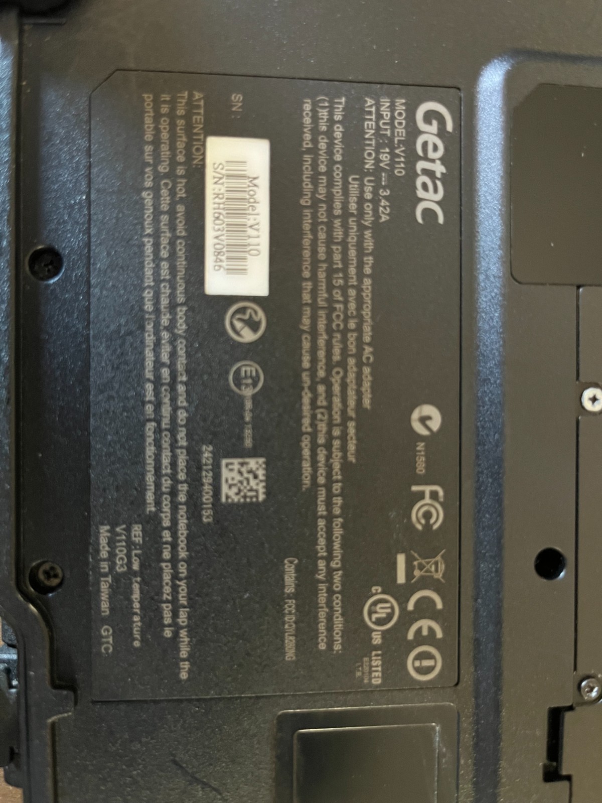 SALE Getac V110 G3 Rugged Laptop Touchscreen i7 8GB No HD/Caddy
