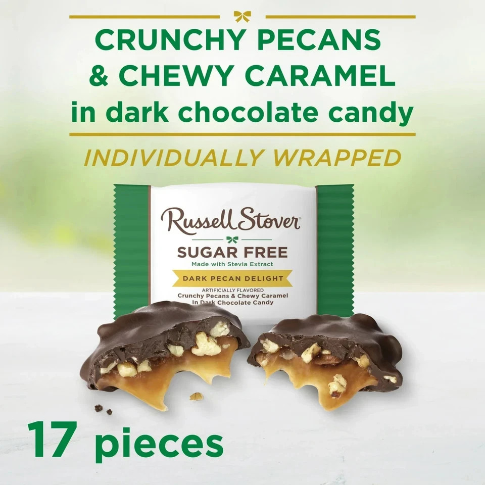 RUSSELL STOVER Sugar Free Dark Chocolate Pecan Delights Candy, 10 oz. bag