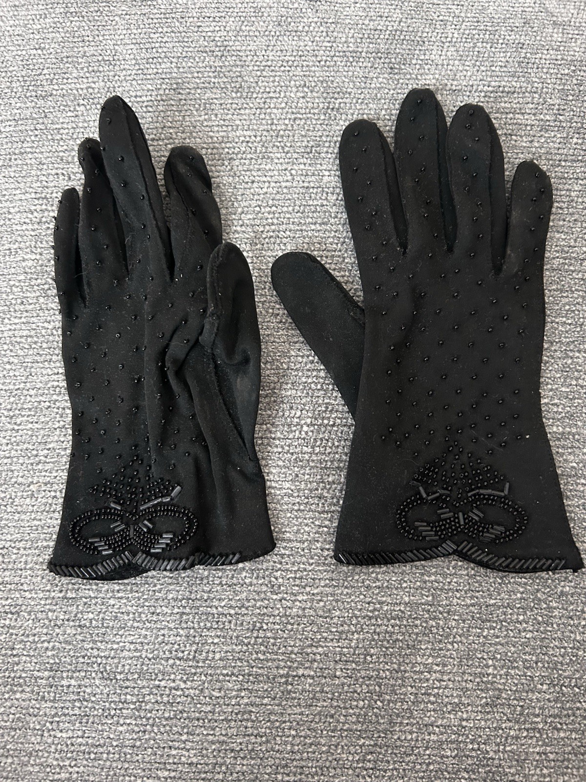 как выглядит VINTAGE Black BEADED NYLON stretch LADIES EVENING Gloves One Size s/m фото