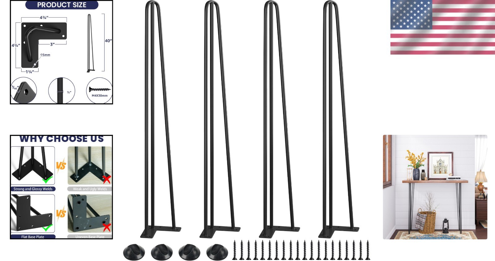как выглядит Sturdy 40 Inch Black Hairpin Table Legs - Ideal for Modern Furniture Projects фото