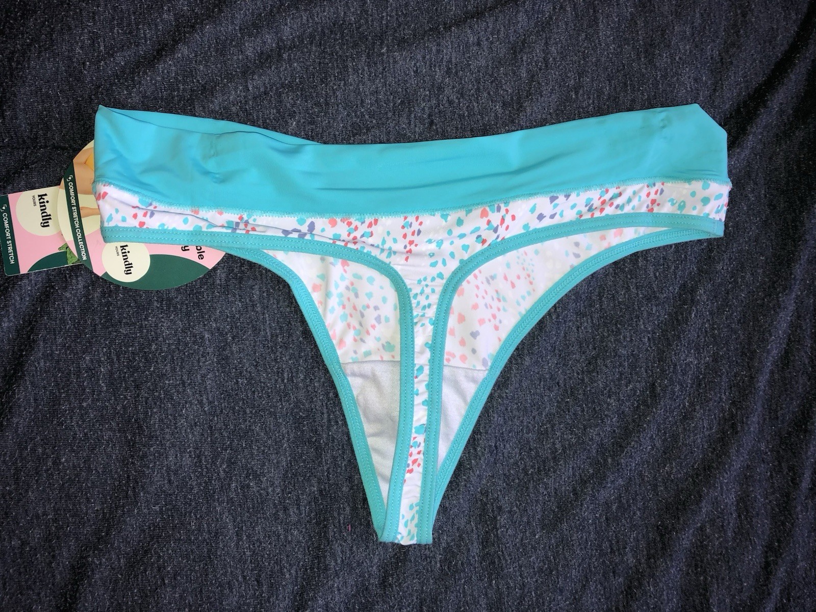 как выглядит Kindly Yours Womens Smooth Thong Panty Small Light Blue Trim NWT фото