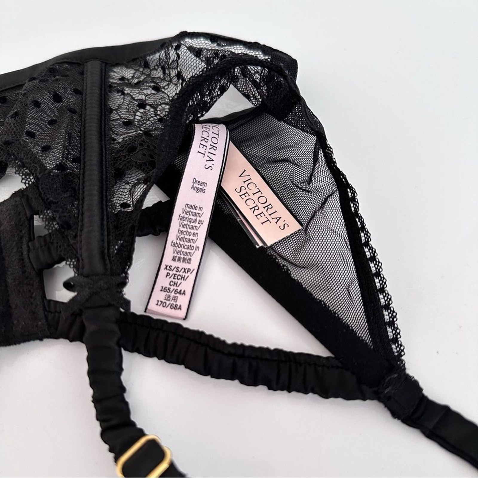 как выглядит NWT Victorias Secret Dream Angels Black Lace Garter Belt Size XS/S фото