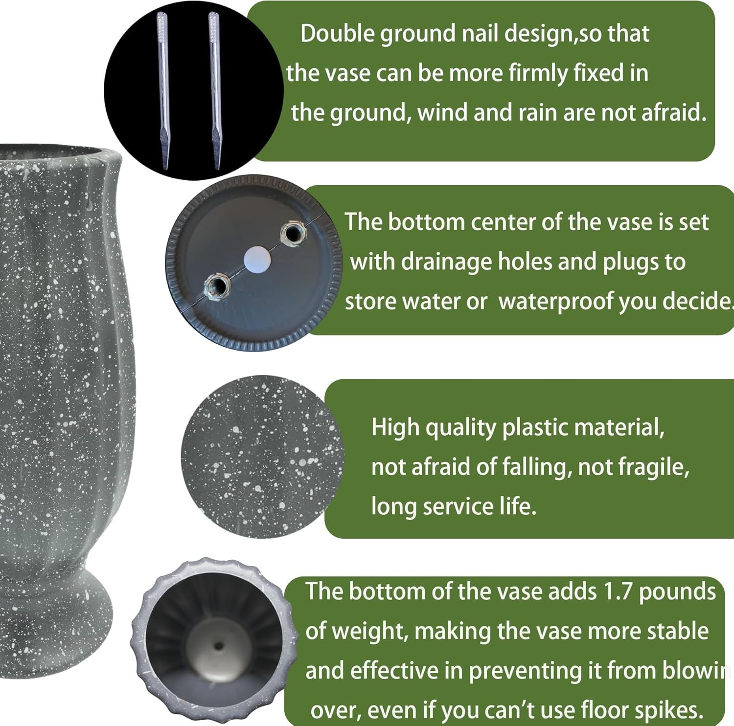 • Cemetery vase for Grave Decorations,Flower Holders for Cemetery vases with Me...