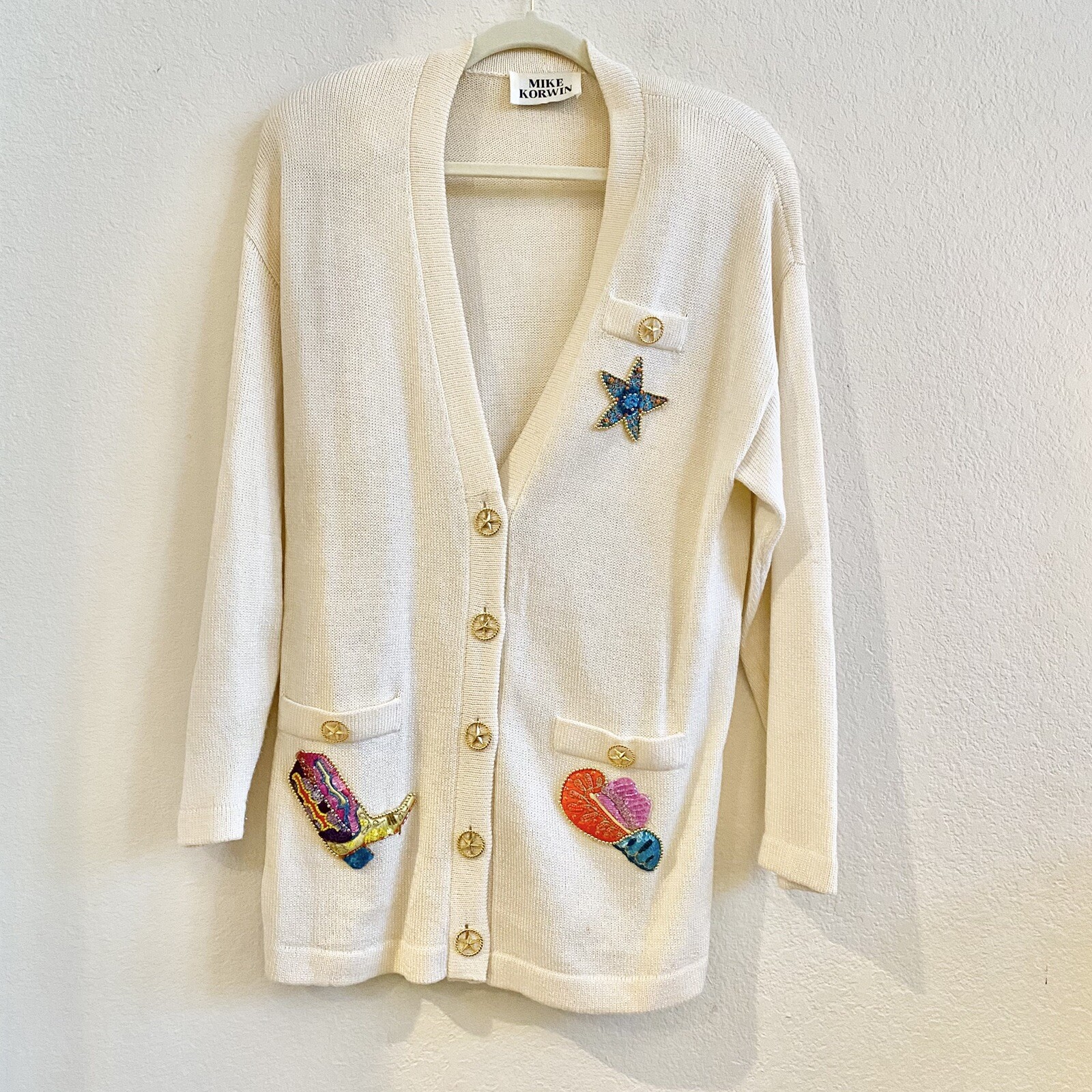Vintage Mike Korwin Cardigan Sweater Rodeo Texas Star Wool 90 s Cowboy Beaded