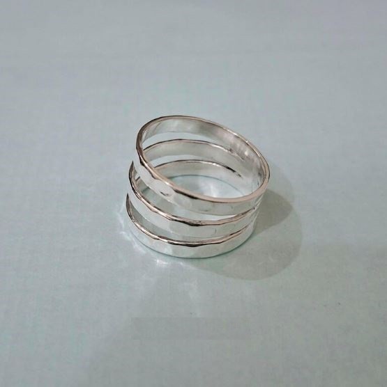 Hammered 925 Sterling Silver Ring: Rustic Wedding Band Ring All Size R 513