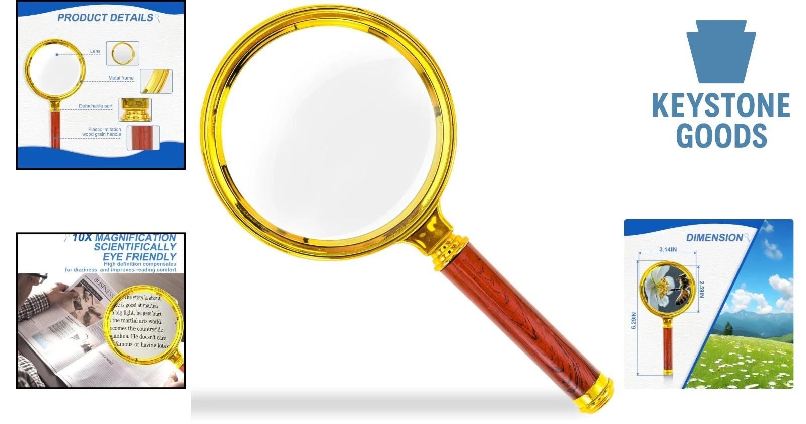 10x Handheld Magnifier with 80mm Glass Lens Gold-plated Frame