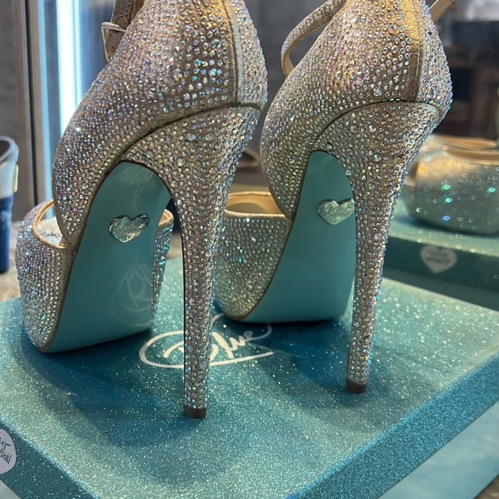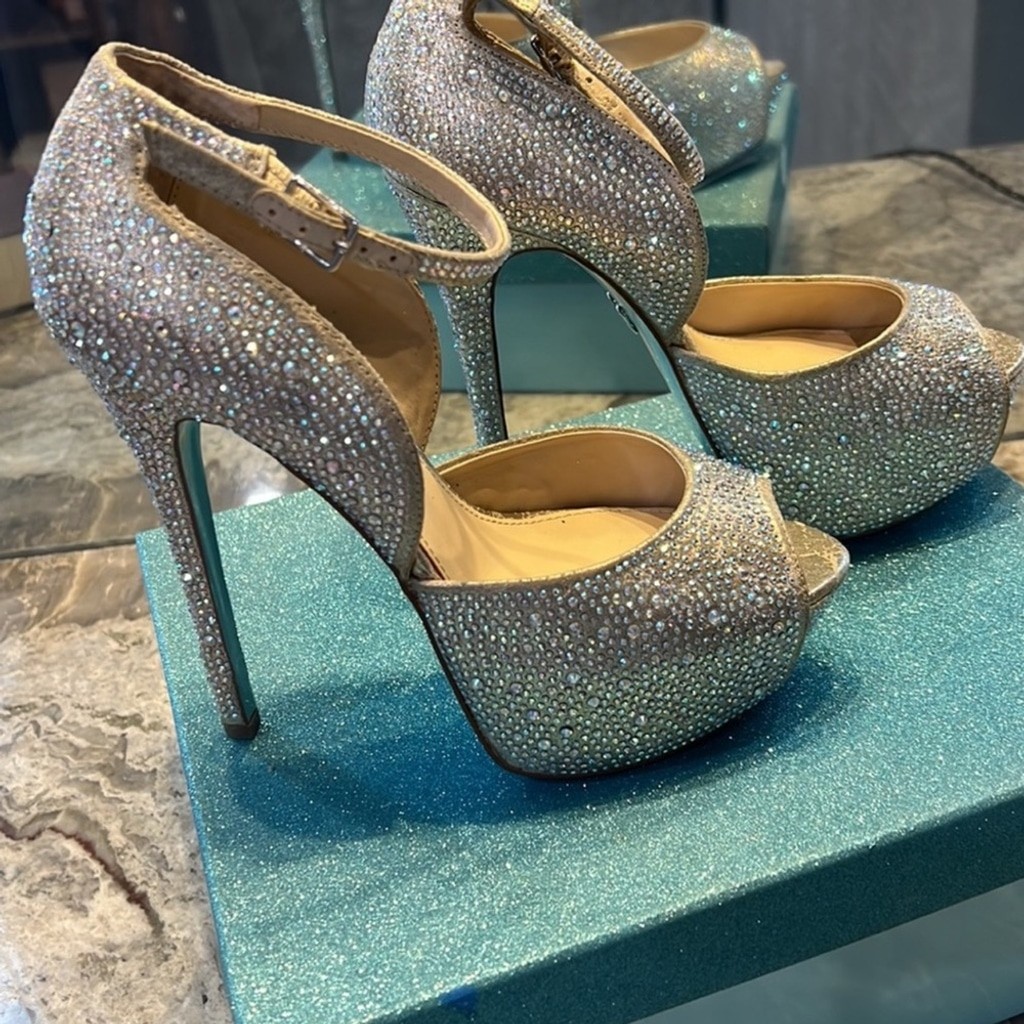 как выглядит Betsey Johnson Something Blue Rhinestone Heels Champagne Sz 8 NIB фото