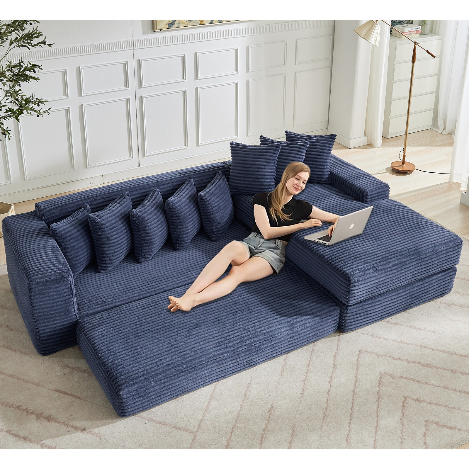 как выглядит 3-in-1 Oversize Cloud Couch,L-Shape Sofa,Convertible Floor Sleeper Sofa Bed Blue фото