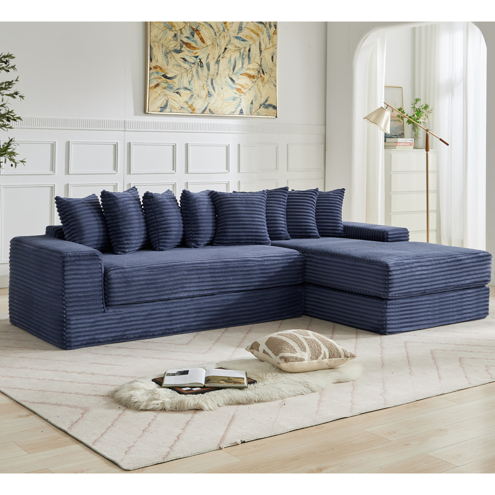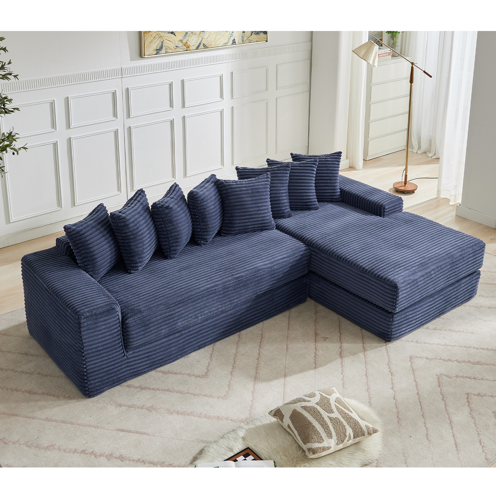 3-in-1 Oversize Cloud Couch,L-Shape Sofa,Convertible Floor Sleeper Sofa Bed Blue