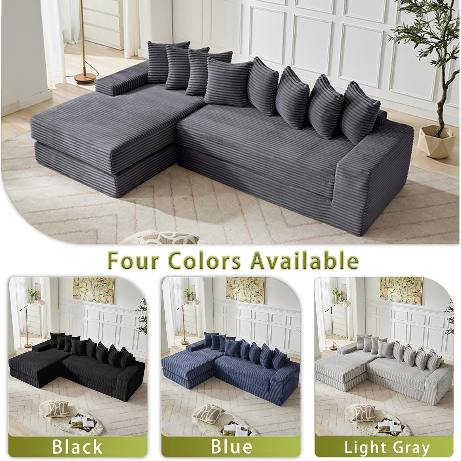 110 Oversize Cloud Sectional Couch,4 Seater L-Shape Sofa,Convertible Floor Sofa