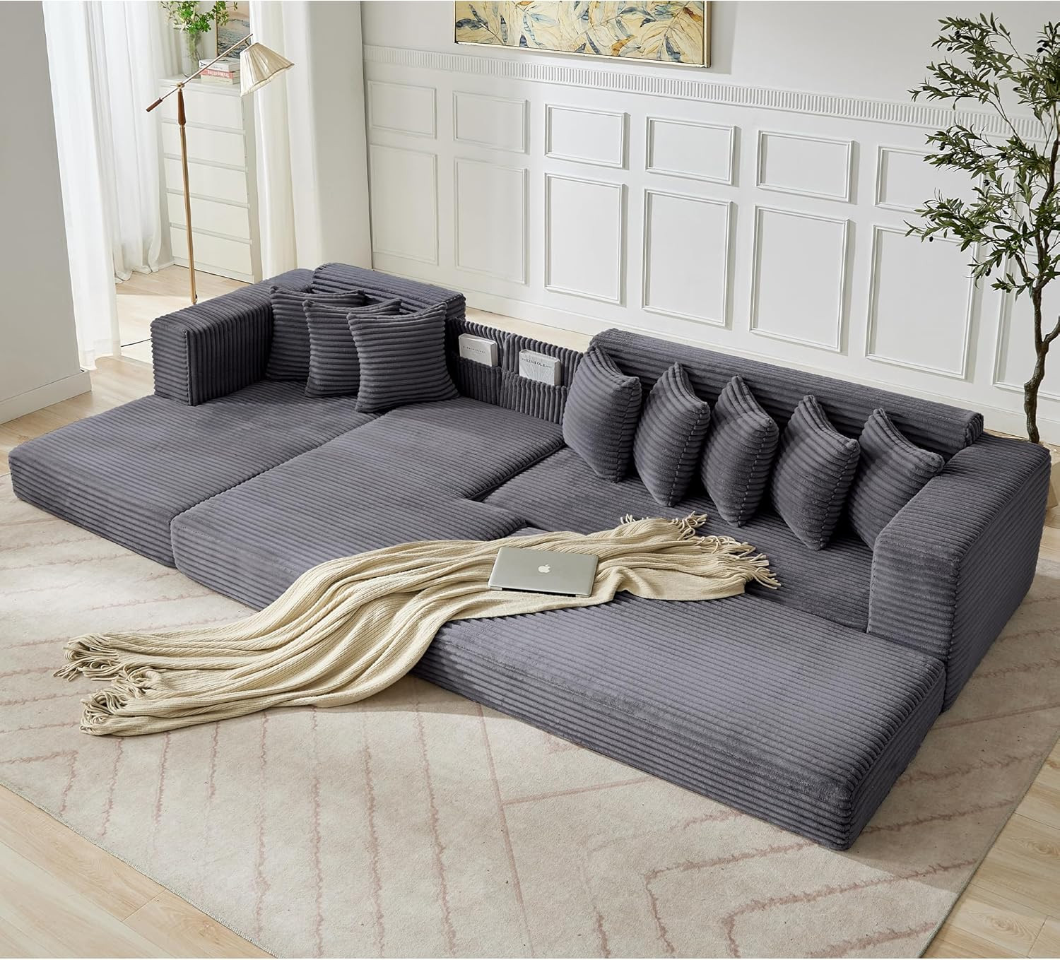 как выглядит 110" Oversize Cloud Sectional Couch,4 Seater L-Shape Sofa,Convertible Floor Sofa фото