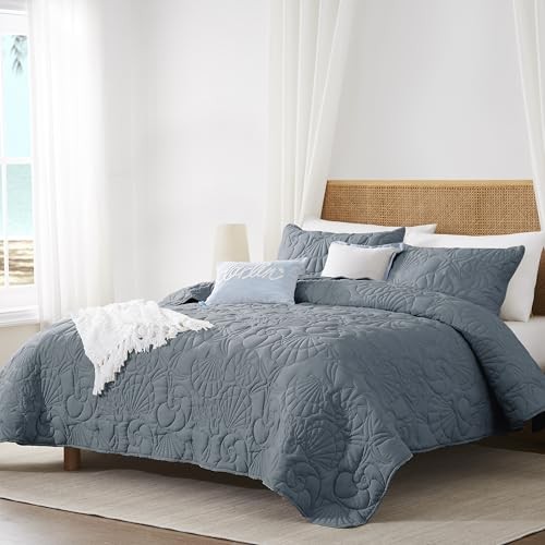 как выглядит Coastal Beach Size Quilt Bedding Sets, Blue Nautical Tropical Twin Blue Grey фото