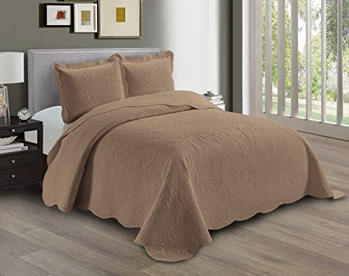Embossed Coverlet Bedspread Set Oversized Solid Bed King/California King Taupe