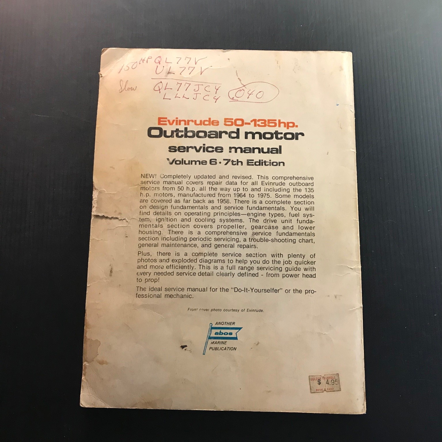 Evinrude 50-135hp Outboard Motor Service Manual 7th Ed 1976 Illustrated Marine