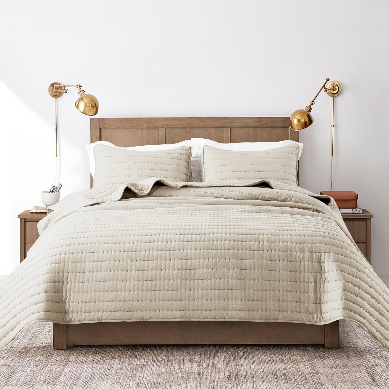 как выглядит Neutral Beige Twin Size Quilt Bedding Sets with 1 Pillow Sham, Lightweight So... фото