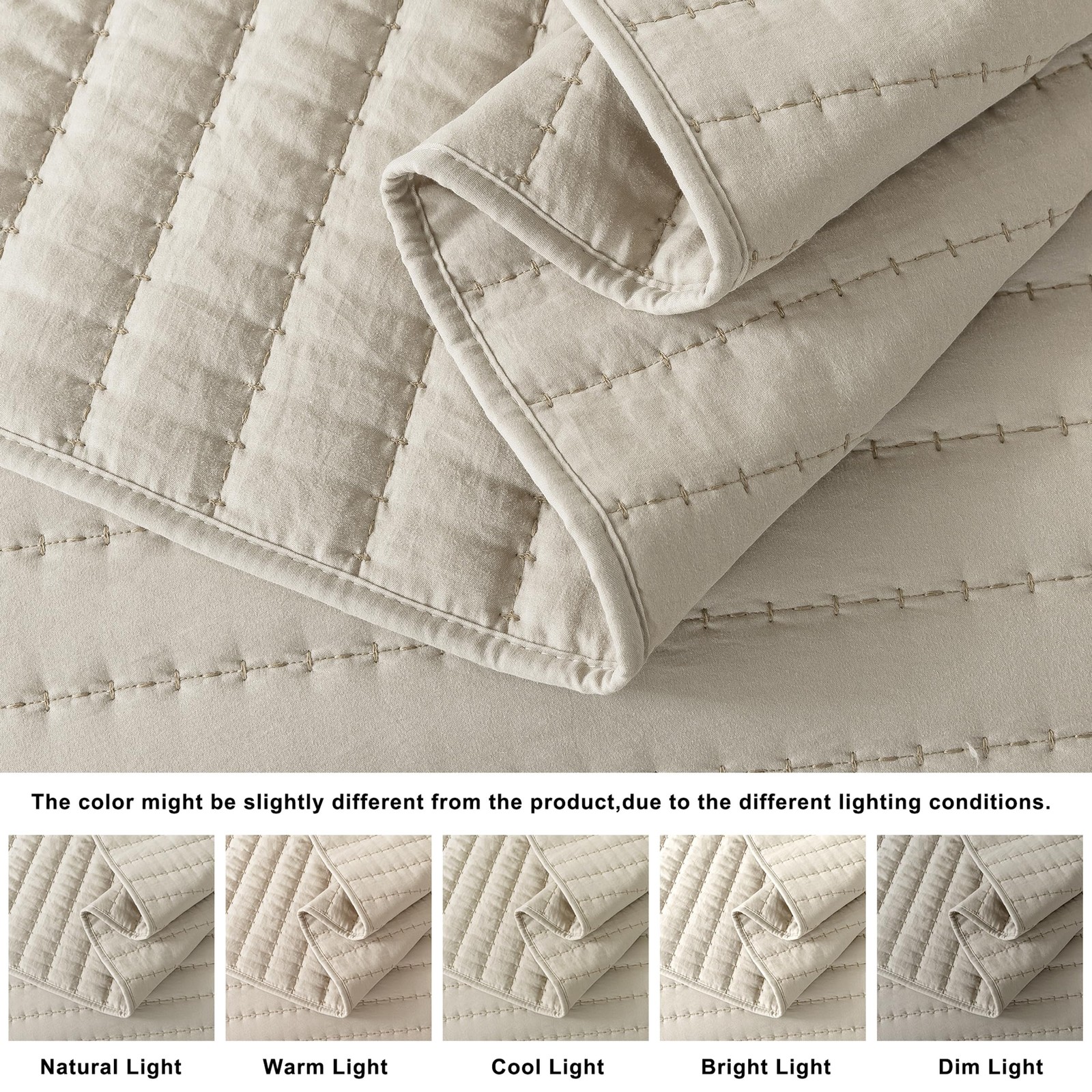 Neutral Beige Twin Size Quilt Bedding Sets with 1 Pillow Sham, Lightweight So...