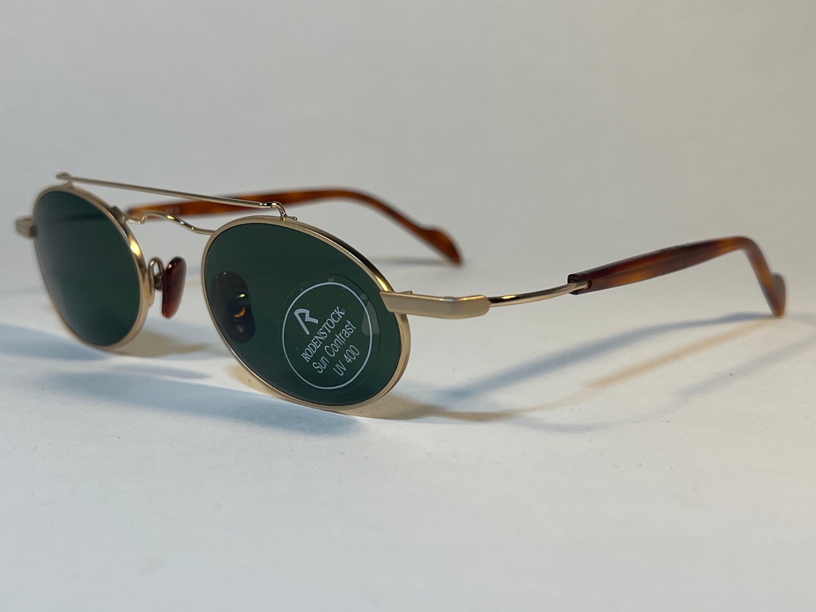 Vintage Rodenstock R1760 A Titanium Sunglasses Oval Gold Green Lenses NOS