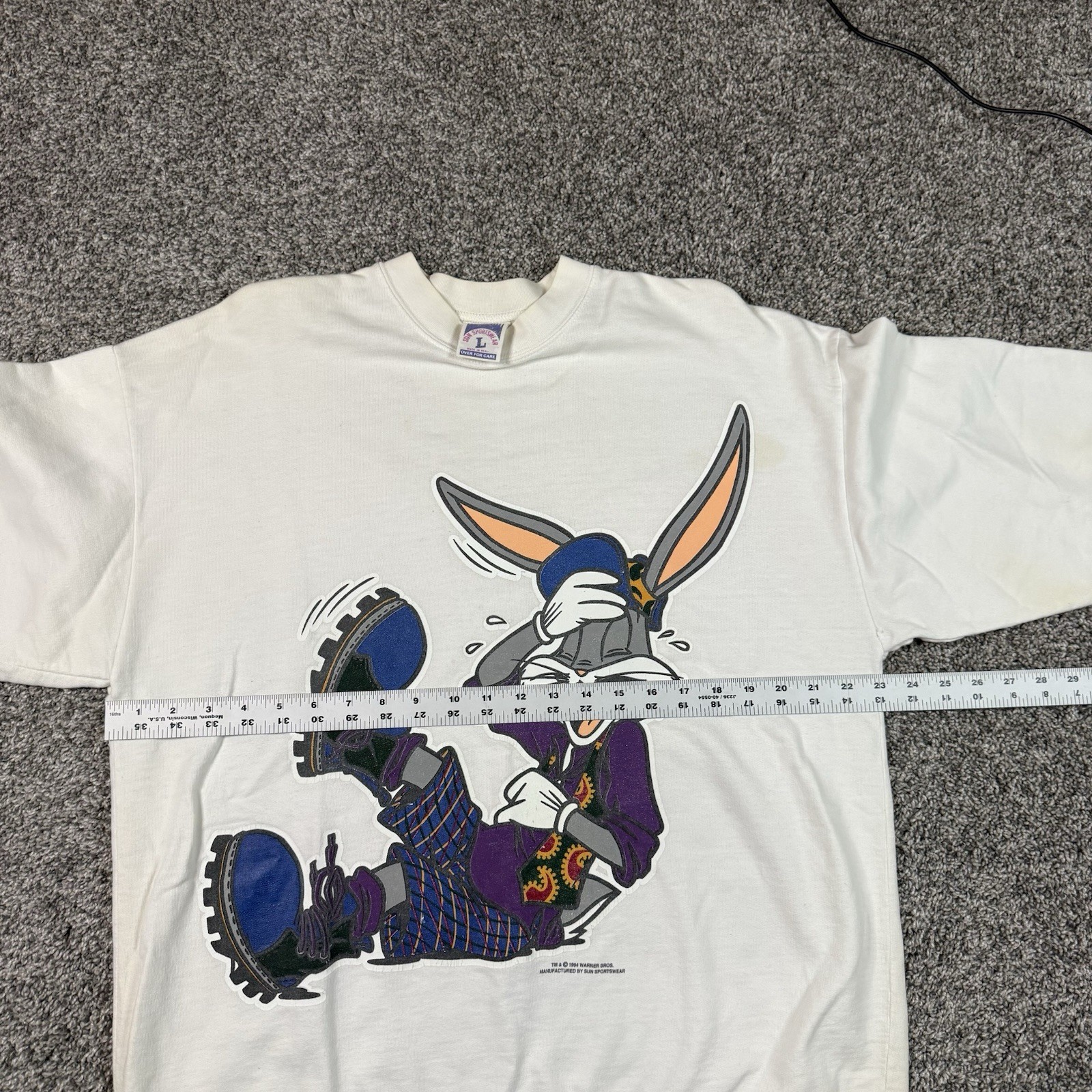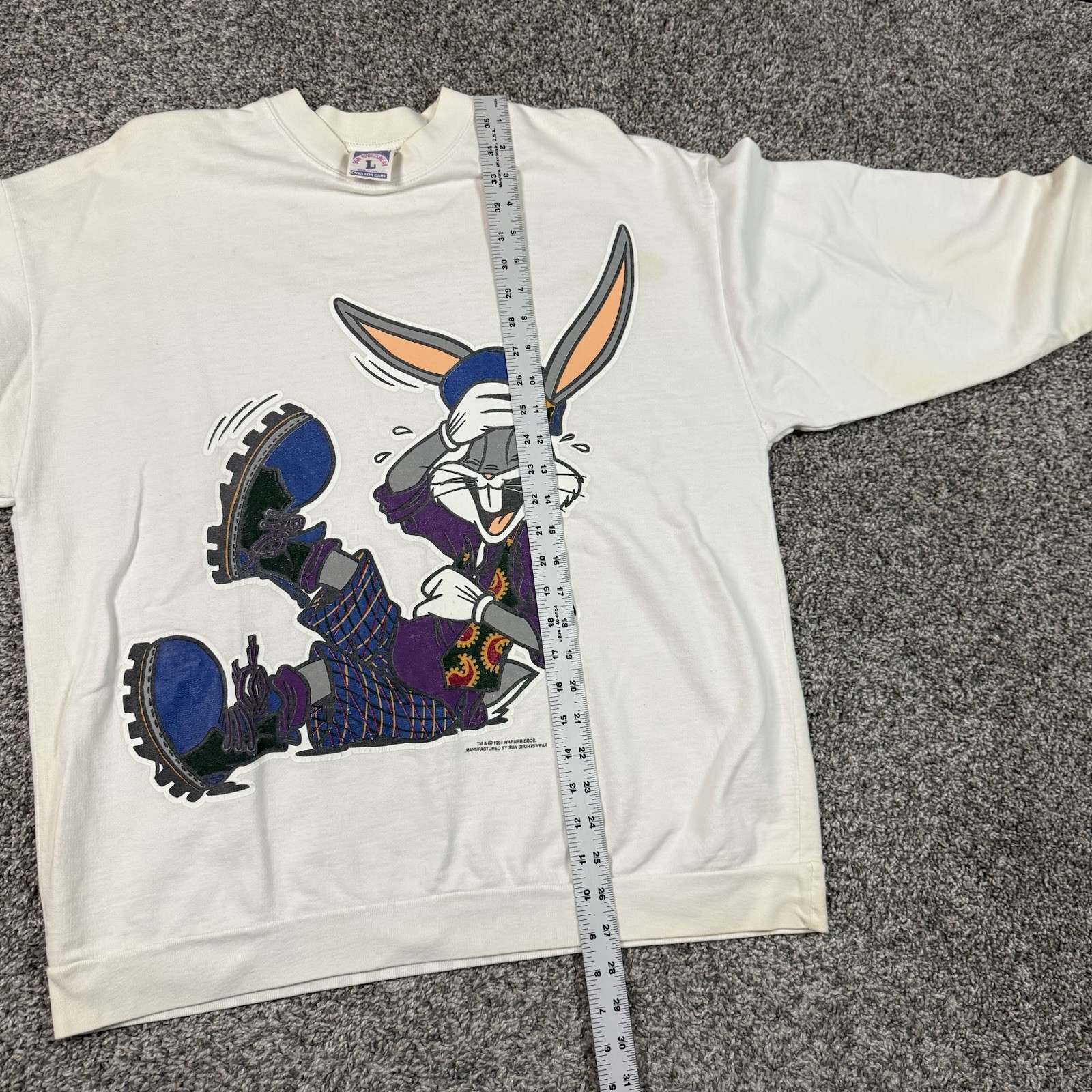 как выглядит Vintage 1994 Looney Tunes Bugs Bunny Portrait Character Crewneck Sweatshirt L фото