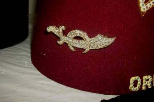• Vintage Shriners Masonic Temple Fez Hat Case Jeweled Zelzah Oriental Band Size 7