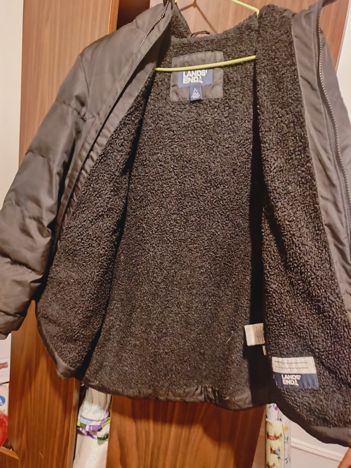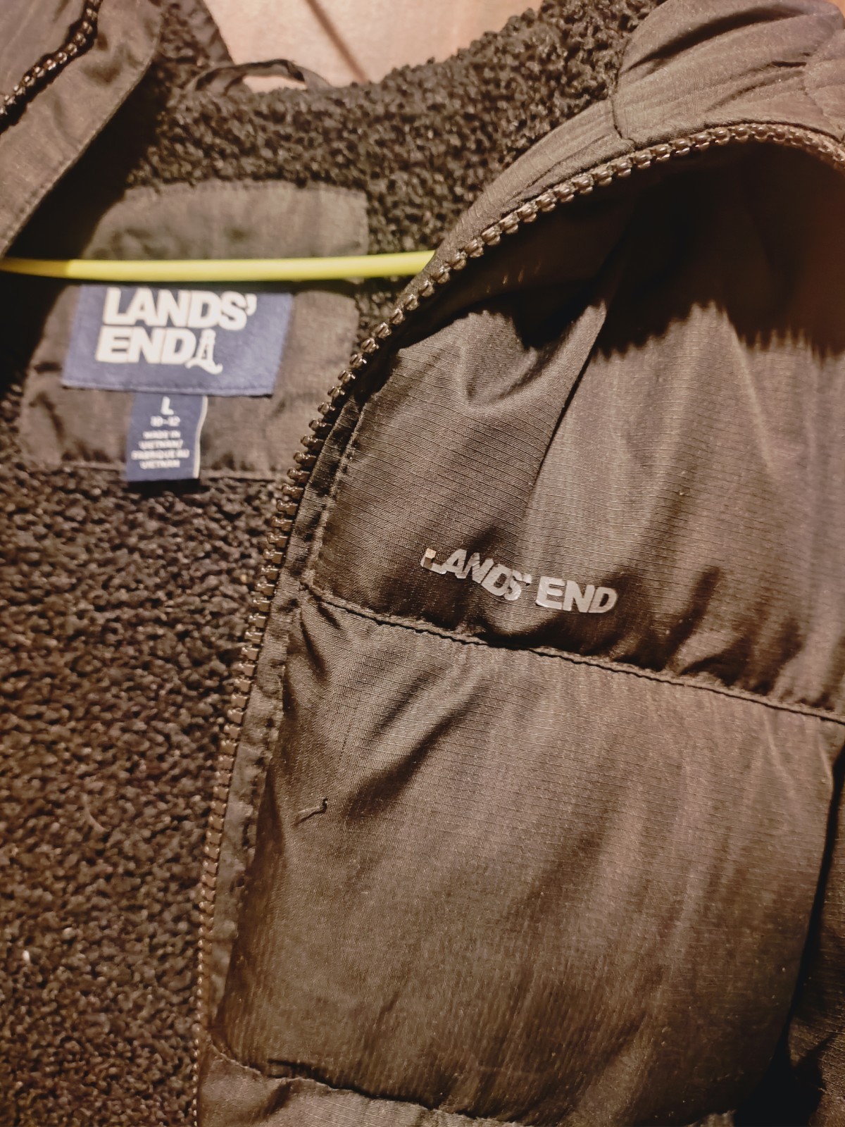 Boy Or Girl LandsEnd kids Black coat with lining hood size large 10/12 used
