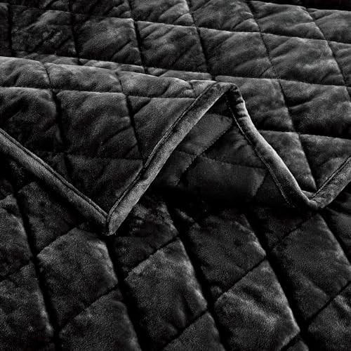 Distressed Velvet Quilt Set, 2 Pieces Distressed Velvet Face and Twin Black