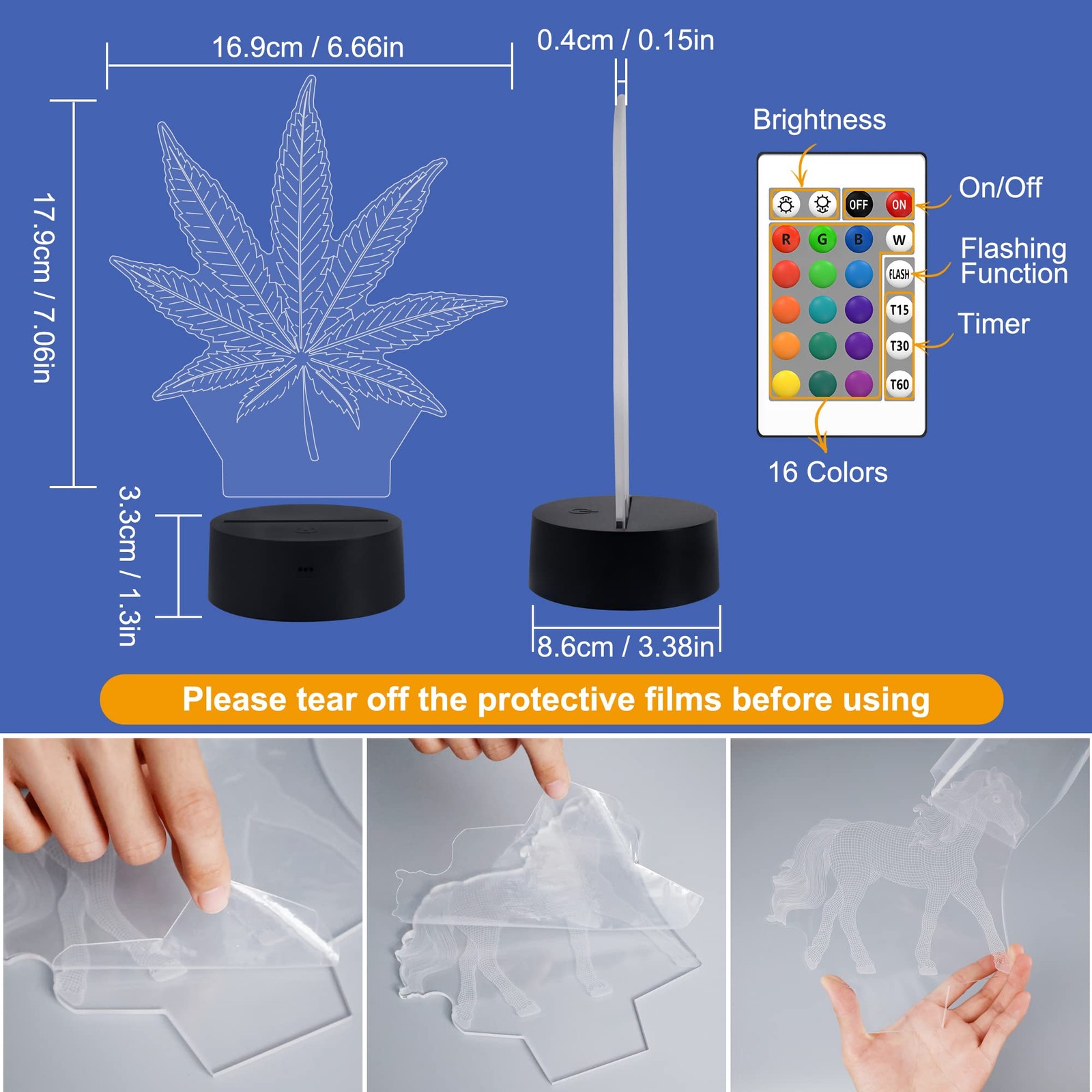 3D Night Light, 3D Illusion Lamp with Remote Control 16 Colors Changing Table...
