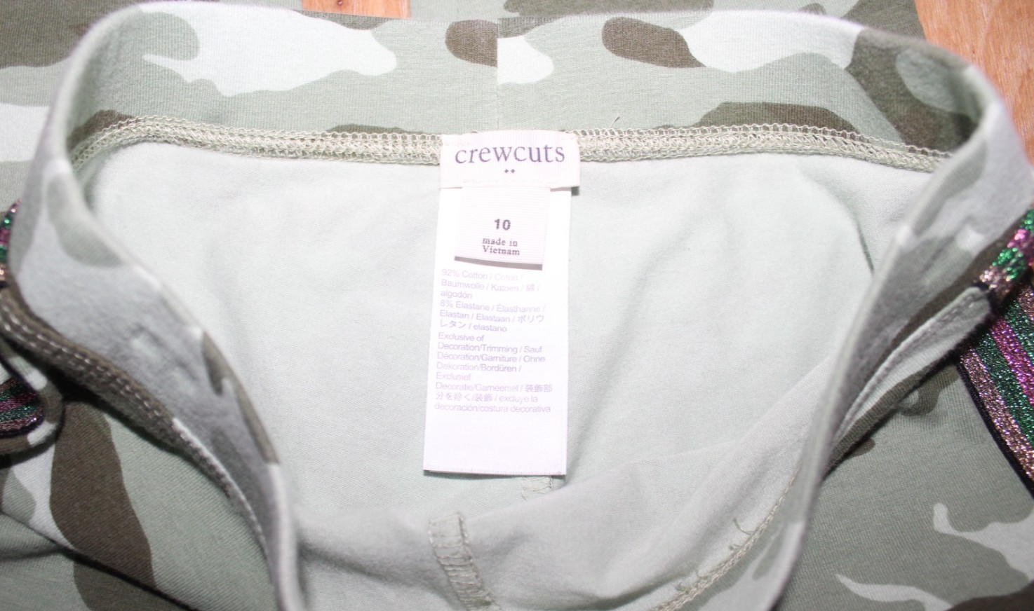 Girls CrewCuts J. Crew Green Camouflage Leggings w/Glitter Stripes Size: 10 EUC