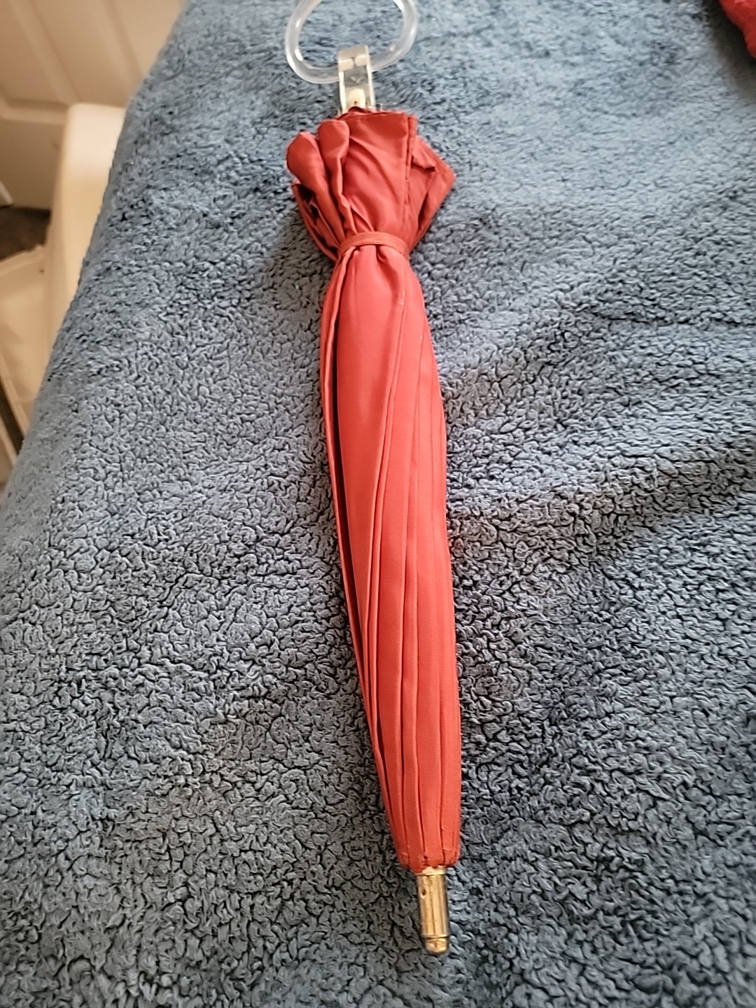 как выглядит Vintage Umbrella Parasol Art Deco Red Acrylic Handle "R" on Snap Closure фото