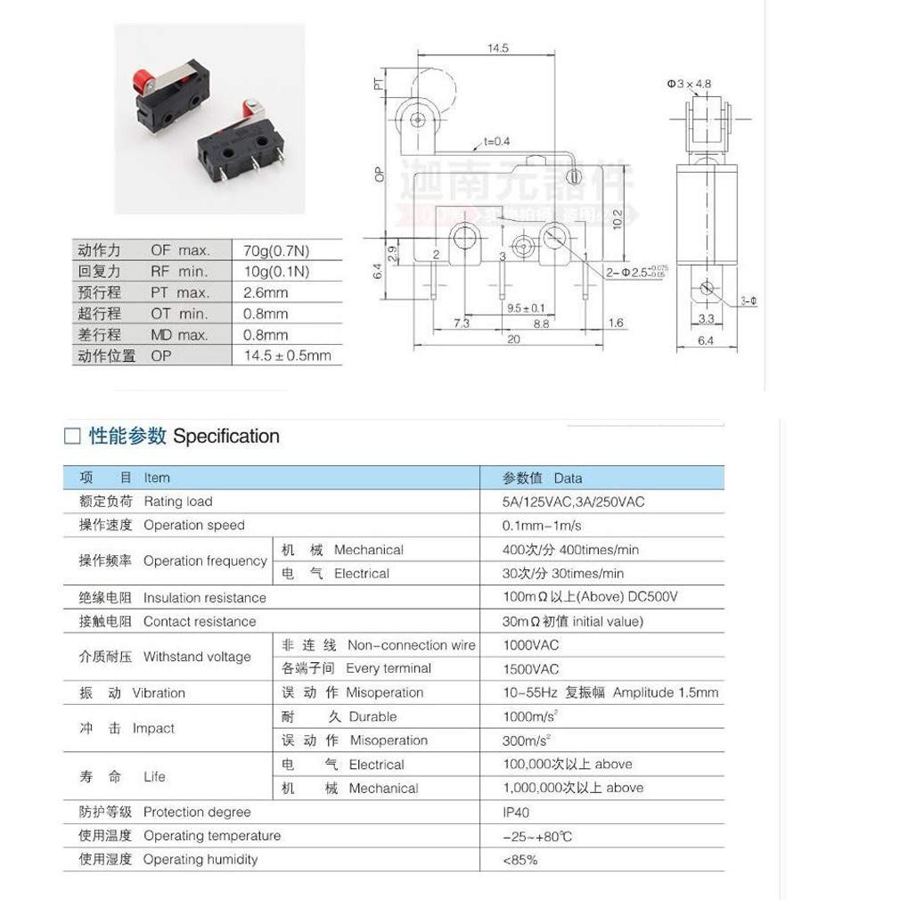 10pcs Black Micro Limit Switch KW12-3 SPDT Roller Lever Arm - Versatile Use