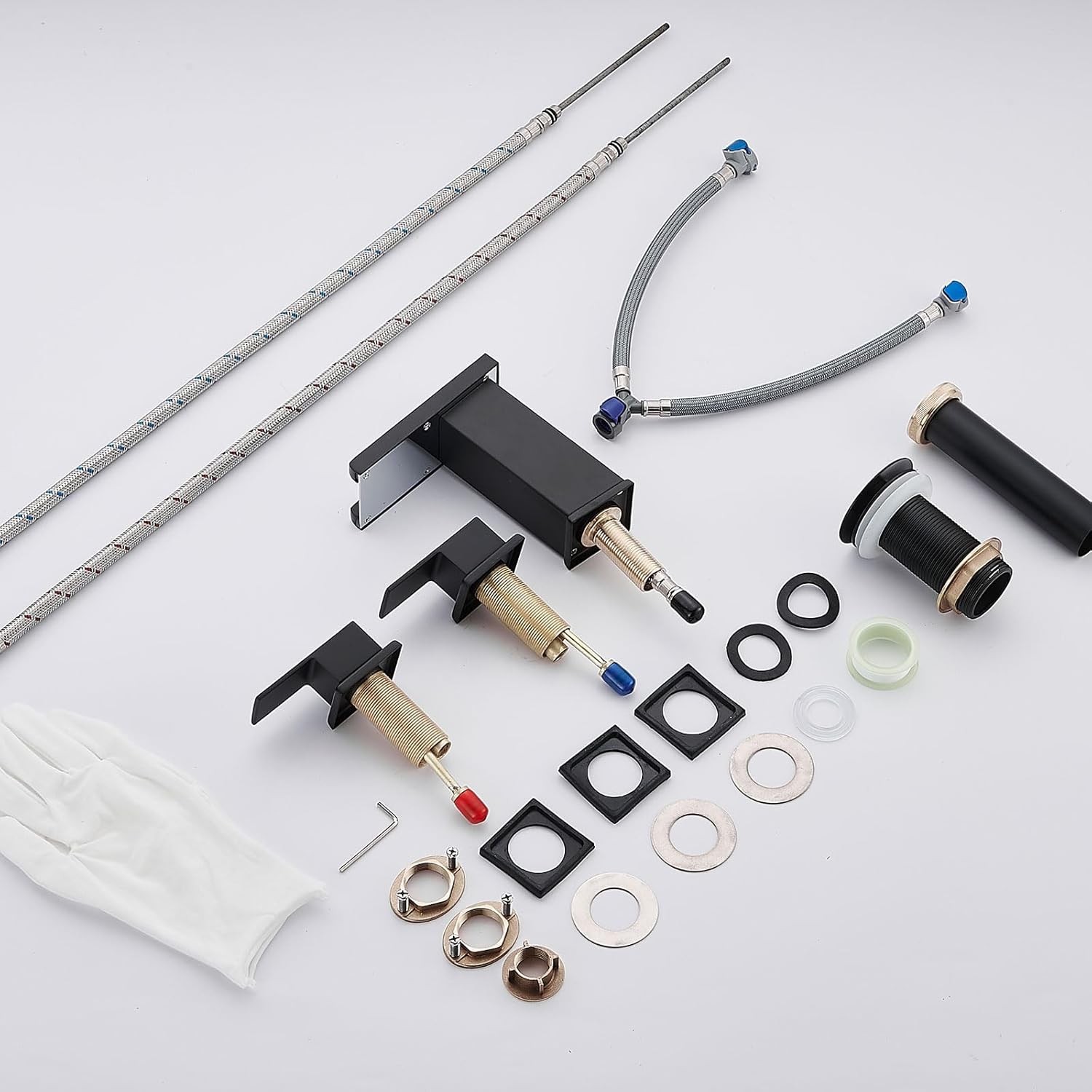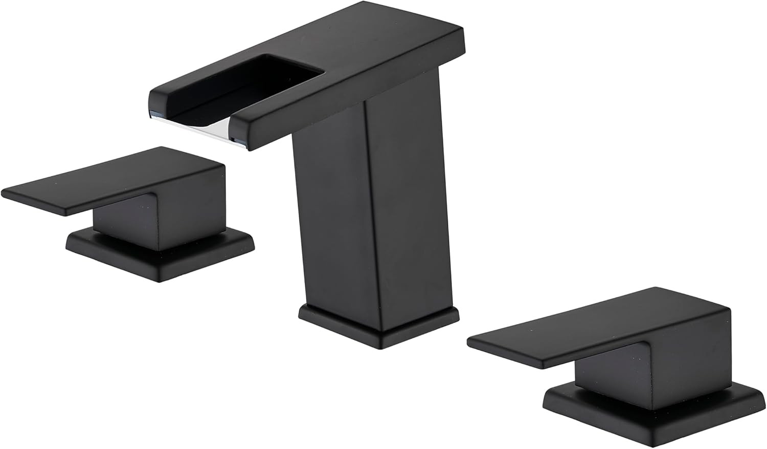 LED Bathroom Faucet 3 Hole, Matte Black Waterfall Bathroom Faucets, 8 Inch