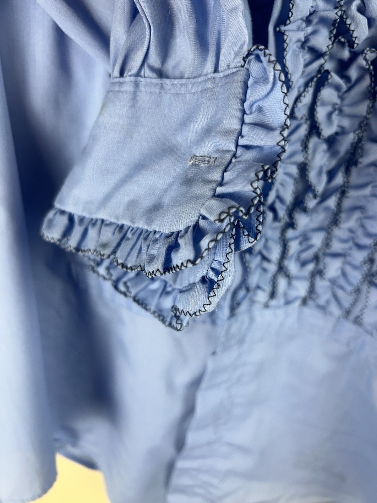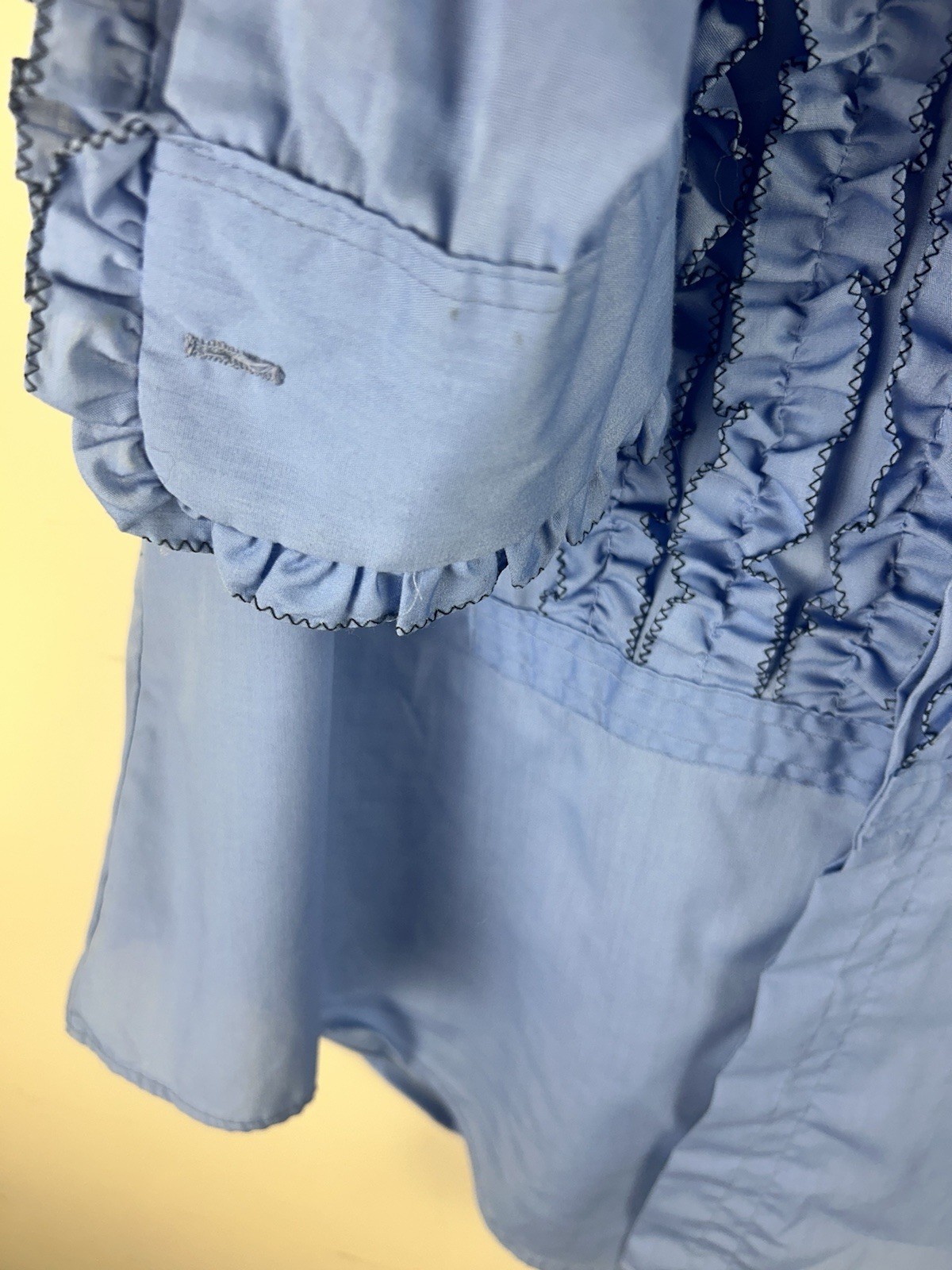 как выглядит VTG 70s Delton Ruffled Tuxedo Shirt Mens Blue 16.5 33in French Cuff READ фото