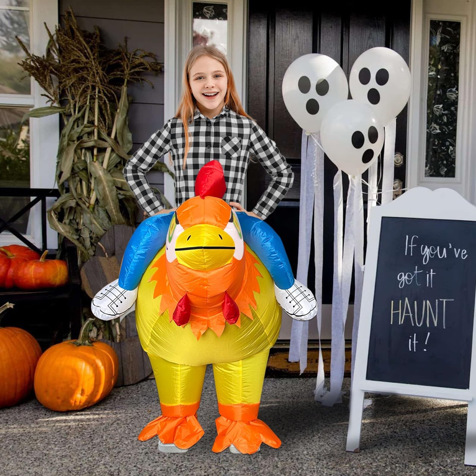 как выглядит Stegosaurus Inflatable Chicken Costume Kids Halloween Blow Up Kids, White фото