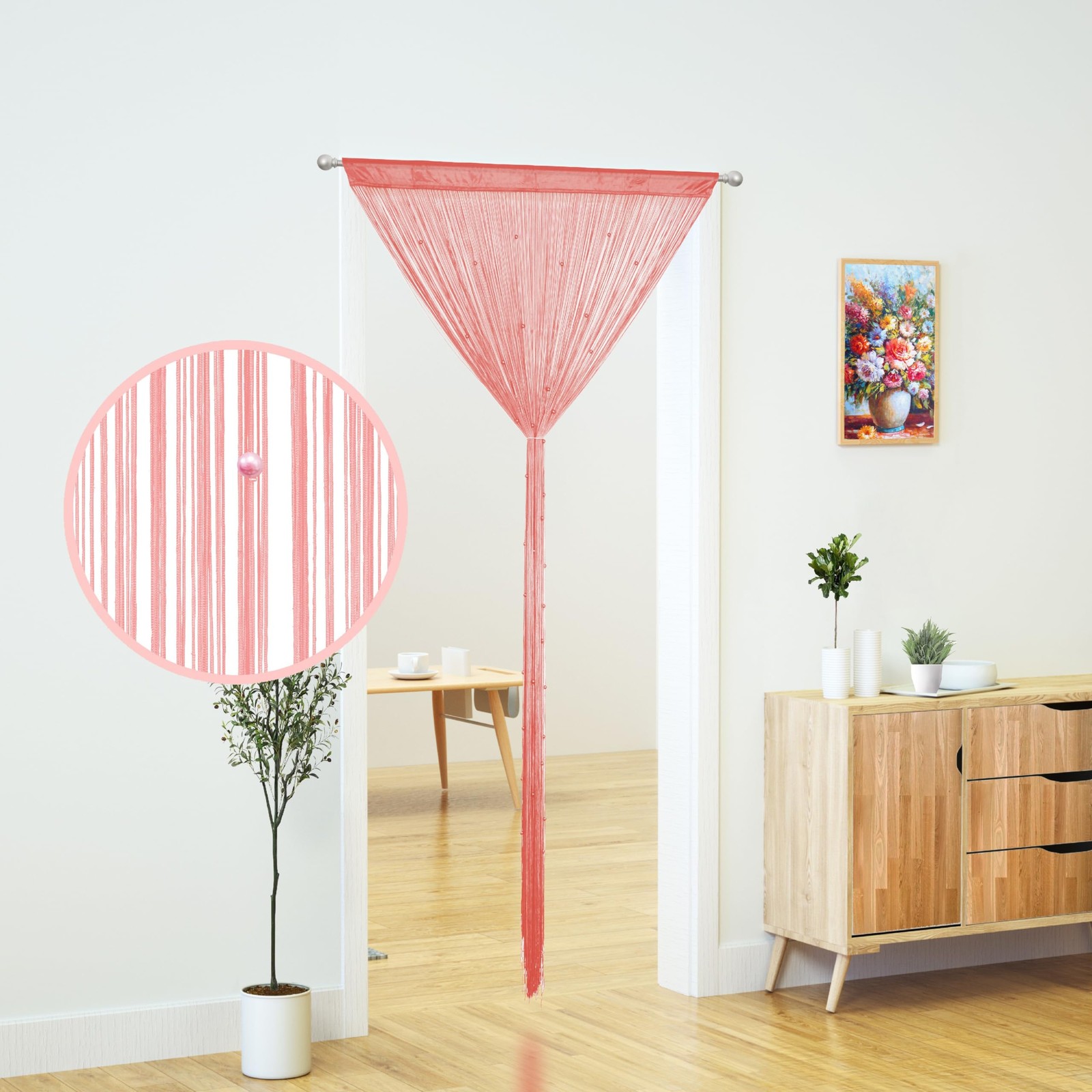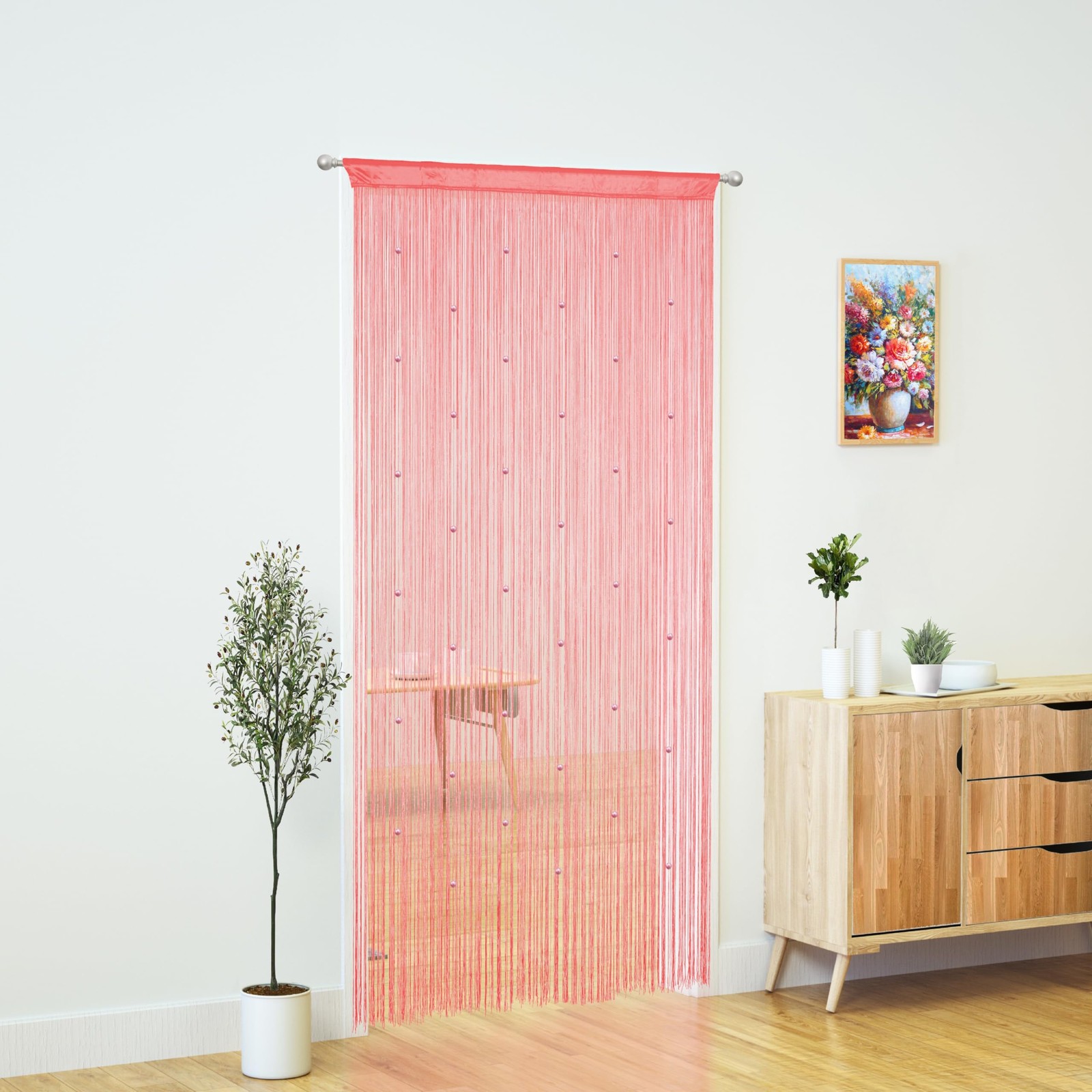 как выглядит YaoYue Beaded Curtain Door String Curtains for 39"W x 79"L Pack of 1 , Pink фото